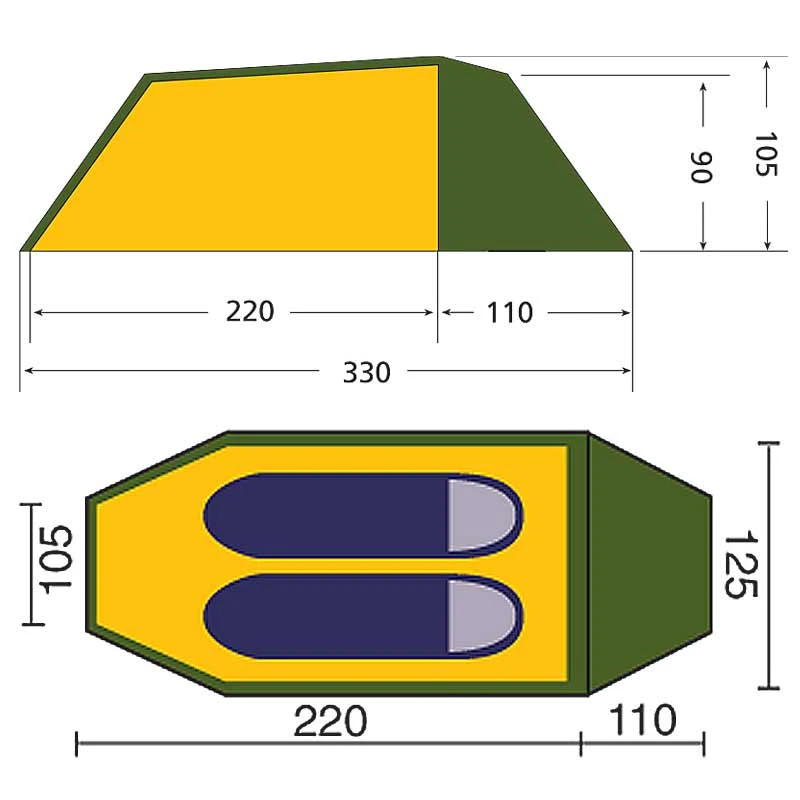 - Tunnelzelt mit 2 parallelen Gestängebögen