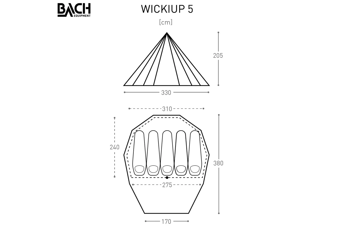 Das Bach WickiUp 5 ist anders – in vielfacher Hinsicht. Wer auf der Suche nach einem Familienzelt mit Stehhöhe, viel Platz und minimalem Gewicht ist, kommt am WickiUp 5 mit seinen gerade einmal 3.800 Gramm eigentlich nicht vorbei. Die asymmetrische Tipi-Konstruktion ist inspiriert von klassischen Zelten aus den Niederlanden und sorgt für eine sehr gute Windstabilität und ein deutlich verbessertes Raumgefühl im Vergleich zu herkömmlichen Tipis. Warum? Beim WickiUp 5 befindet sich die Stange durch die langgestreckte Form nicht in der Mitte, sondern im vorderen Drittel des Zeltes. So entsteht im hinteren Zeltbereich der 2,40 m lange Innenraum ohne Stange, der bei einer Breite von mindestens 2,75 m Platz für 4 bis 5 Personen bietet und natürlich mit einem verschließbaren Innenzelt mit Boden und Mesh-Einsätzen ausgestattet ist. Der großzügige Eingangsbereich verbleibt ebenfalls ohne störende Stange als Raum für Gepäck, zum Sitzen und Kochen bei schlechtem Wetter oder für Rad und Hund. Die exotisch anmutende Konstruktion in Verbindung mit ausgewählten Ultraleicht-Materialien macht das WickiUp 5 so zu einem sehr großzügigen Zelt für 4-5 Personen, das perfekt für Rad- und Bootstouren geeignet ist und dennoch entspannten Urlaub ohne Gedränge garantiert.