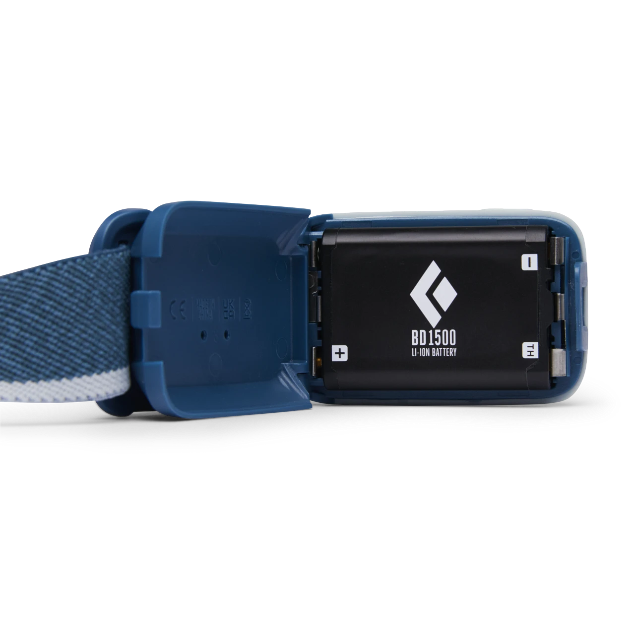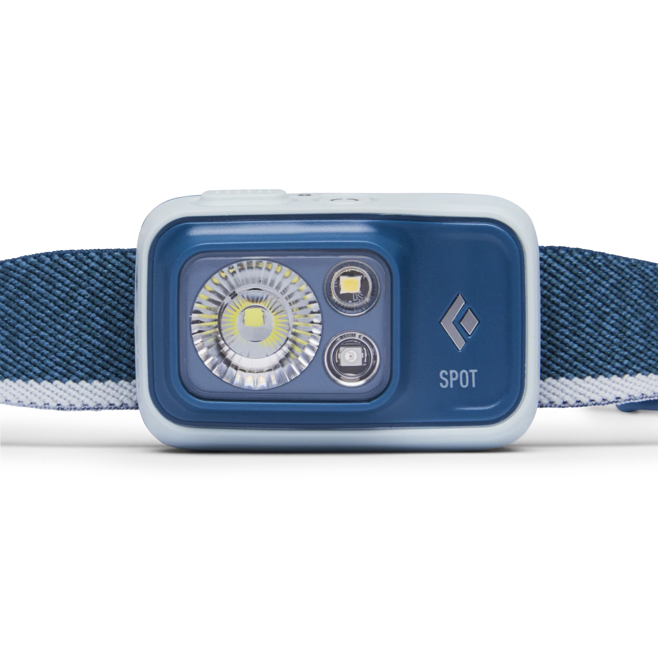 Die leistungsstarke und vielseitig einsetzbare Stirnlampe Spot 400 von Black Diamond wird ständig weiter überarbeitet, was Leistung und Lichtbild angeht. Die Lampe ist mit einem flachen, griffigen Kunststoffkörper und flachen Bedienknöpfen zum Durchschalten der Leuchtmodi ausgestattet. Ein leichter Druck, gerne auch mit Handschuhen, erhellt die verschiedenen Leuchtmodi der Stirnlampe, die mit insgesamt 3 LEDs aufwarten kann. Für beste Fernsicht sorgt die TriplePower LED, die mit 400 Lumen eine Strecke von bis zu 100 Metern ausleuchtet. Für die Ausleuchtung im Nahbereich sorgen zwei SinglePower LEDs. Beide LEDs (Nah- und Fernlicht) können zur gleichen Zeit geschaltet werden, sodass Nah- und Fernbereich optimal ausgeleuchtet sind. Zu diesen beiden Powerpaketen gesellt sich eine rote SinglePower LED, die, wie ihre beiden weißen Mitstreiter auch, stufenlos gedimmt werden kann. Ein Blinklichtmodus ist selbstredend ebenfalls vorhanden! Berieben wird die Kopflampe mit 3 AAA Batterien (im Lieferumfang enthalten) oder dem wiederaufladbarem Lithium-Ionen-AKKU BD 1500 (nicht im Lieferumfang enthalten).