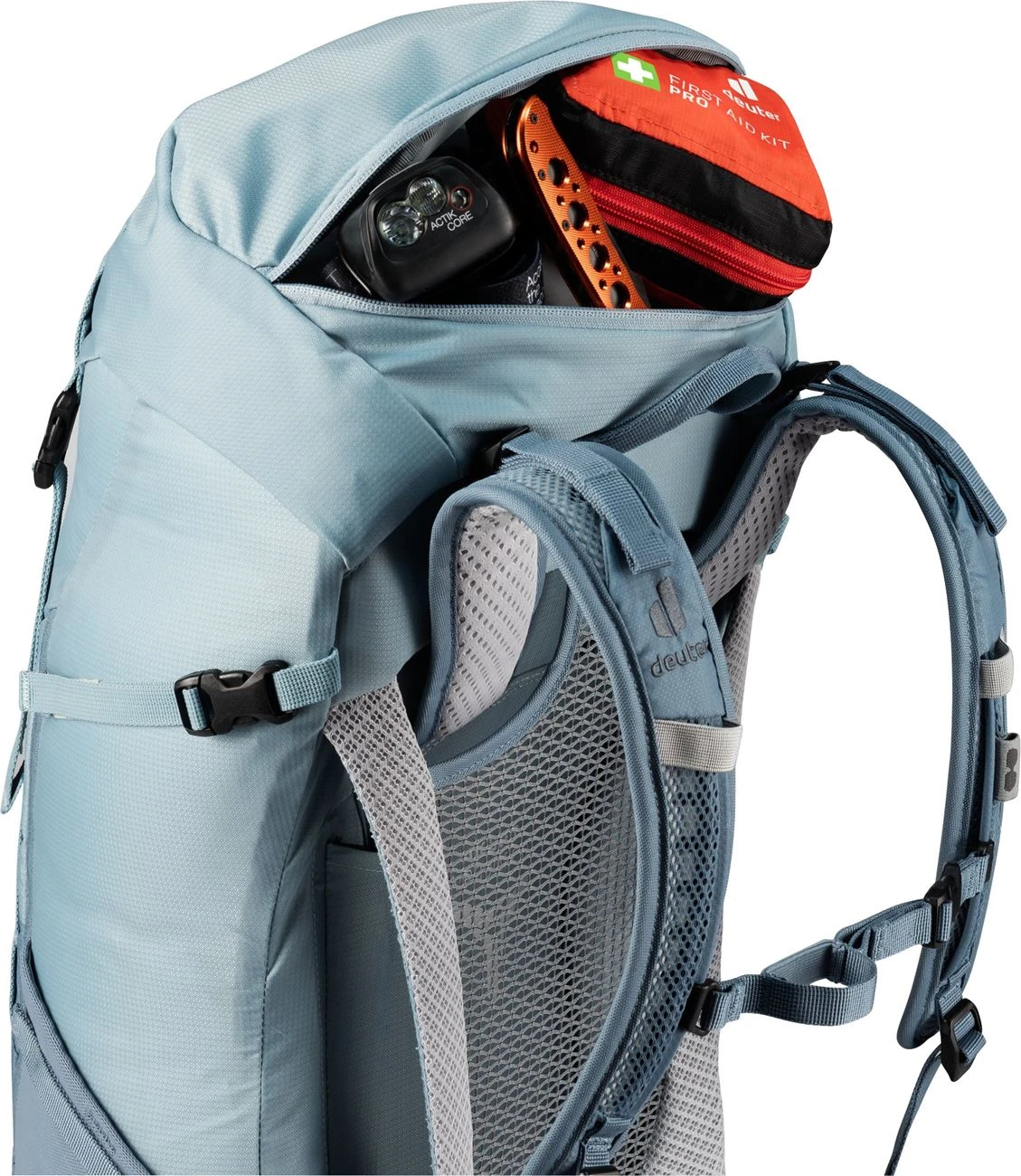 - Pull-Forward-Verschluss am Hüftgurt (schnelle Fixierung des Hüftgurtes)