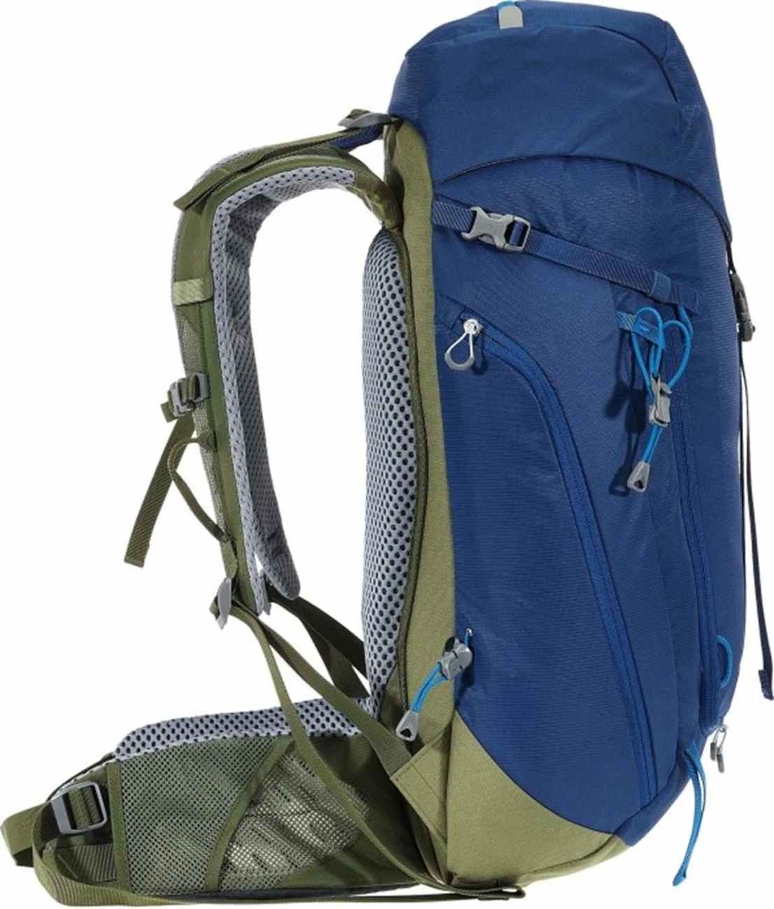 Leicht, vielseitig und mit einer sehr aufgeräumten Optik zeigt sich der Trail 30 von Deuter. Das bewährte Aircontact-Rückensystem sorgt in Kombination mit den verstaubaren Hüftflossen für ideale Lastenkontrolle und bietet gleichzeitig eine gute Rückenbelüftung. Dieser Wanderrucksack fasst reichlich Bekleidung und Zubehör, die auf einer Tages- oder sparsamen Wochenendtour benötigt werden. Den Trail 30 zeichnet der große Frontzugriff aus. Der umlaufende Reißverschluss gewährt einen perfekten Zugriff auf den Rucksackinhalt und ermöglicht optimales Packen. Auch mit Taschen und Reißverschlussfächern geizt Deuter bei diesem Daypack ganz und gar nicht: Zwei Taschen im Deckelfach, eine seitliche Flaschentasche, eine Balgtasche mit Reißverschluss und eine flache Tasche auf der Frontseite sorgen für die größtmögliche Übersichtlichkeit beim Verstauen des Equipments. Bei der Materialwahl und der Gestaltung der Hüftflossen legt Deuter größten Wert auf Leichtgewichtigkeit, ohne dass dabei Abstriche bei Robustheit und Langlebigkeit gemacht werden müssen. Somit ist der Trail 30 nicht nur auf Tageswanderungen ein praktischer Begleiter, sondern ebenso im (Büro-, Schul-, Uni-) Alltag.