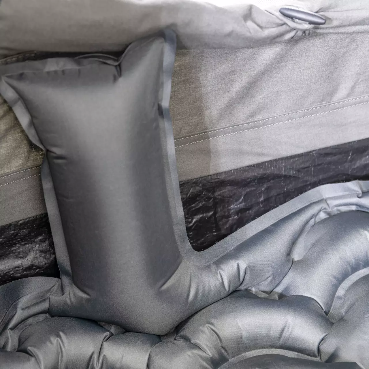 - kleines, aufpumpbares 2-Personen-Zelt mit integrierter Luftmatratze