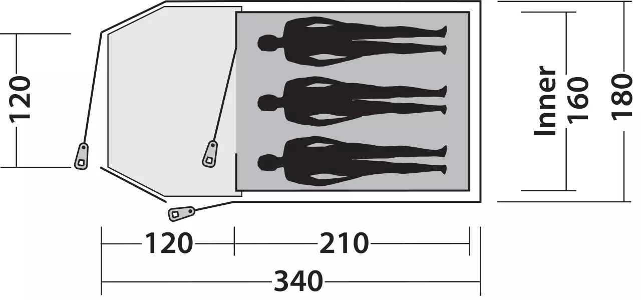 - zwei Eingänge in den Vorraum, ein Innenzelt-Eingang