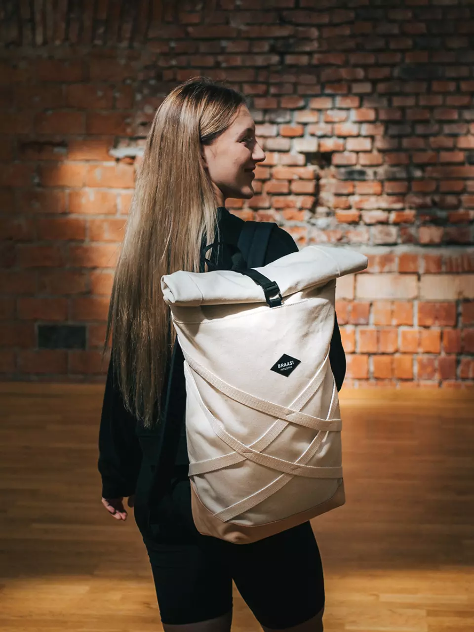 Innovativ, modern, minimalistisch und besonders robust – das ist der Alltagsrucksack Henry Canvas von Braasi. Für einen noch eleganteren Look ist er aus Canvas Baumwolle gefertigt. Am Boden verarbeitet Braasi hochwertiges, italienisches Leder, sodass der Rucksack widerstandsfähig und langlebig ist. Dank einem wasserabweisend beschichteten Innenmaterial bleiben wichtige Gegenstände trocken. Der Rolltop lässt sich mittels einer robusten Schnalle aus Metall verschließen. Das Tragesystem bestehend aus einem gepolsterten Rückenteil und Schulterträgern bietet außergewöhnlichen Tragekomfort im Daypack-Bereich. Ein besonders wertiges Detail hier ist das Patch aus italienischem Leder, welches die Schultergurte an der Rückseite befestigt und ergonomisch perfekt zwischen den Schulterblättern platziert ist. Auch etwas schwerere Lasten stellen für den Henry Canvas damit kein Problem dar. Mit seinen 21 Litern ist im Stadtalltag für genügend Stauraum gesorgt. Wenn es doch mal eng wird und der Rolltop-Verschluss nicht mehr schließen möchte, ist die durchdachte Lösung von Braasi nicht weit. Die diagonal über die Front verlaufenden Gurtbänder sind an sechs Punkten justierbar und bilden so ein Haltenetz, in dem sowohl kompakte und flache Gegenstände, wie etwa Fahrradschlösser, aber auch voluminöse Einkäufe außerhalb des Rucksacks transportiert werden können. Zusätzlich finden kleinere Gegenstände, die schnell zugänglich sein sollen, in der Reißverschlusstasche auf der Oberseite des Rucksacks ihren Platz. Ein bis zu 14 Zoll großer Laptop lässt sich in der dafür vorgesehenen Seitentasche verstauen. Die langlebigen YKK®-Reißverschlüsse fügen sich hervorragend in das Konzept des Henry Canvas ein. Braasi kreiert mit dem Henry Canvas einen sowohl eleganten als auch funktional äußerst durchdachten Tagesrucksack. Das Beste: seine Materialien sind nicht nur sehr beständig, zum Henry Canvas verarbeitet werden sie außerdem mitten in Europa, nämlich in Prag in der tschechischen Republik.