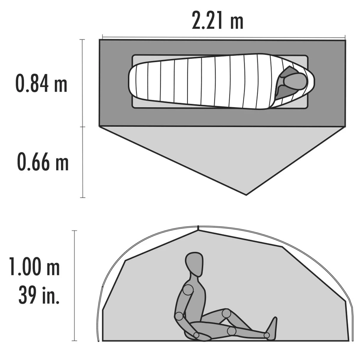 - Innenzelt mit geräumiger, rechteckiger Grundfläche (221 x 84 cm)
