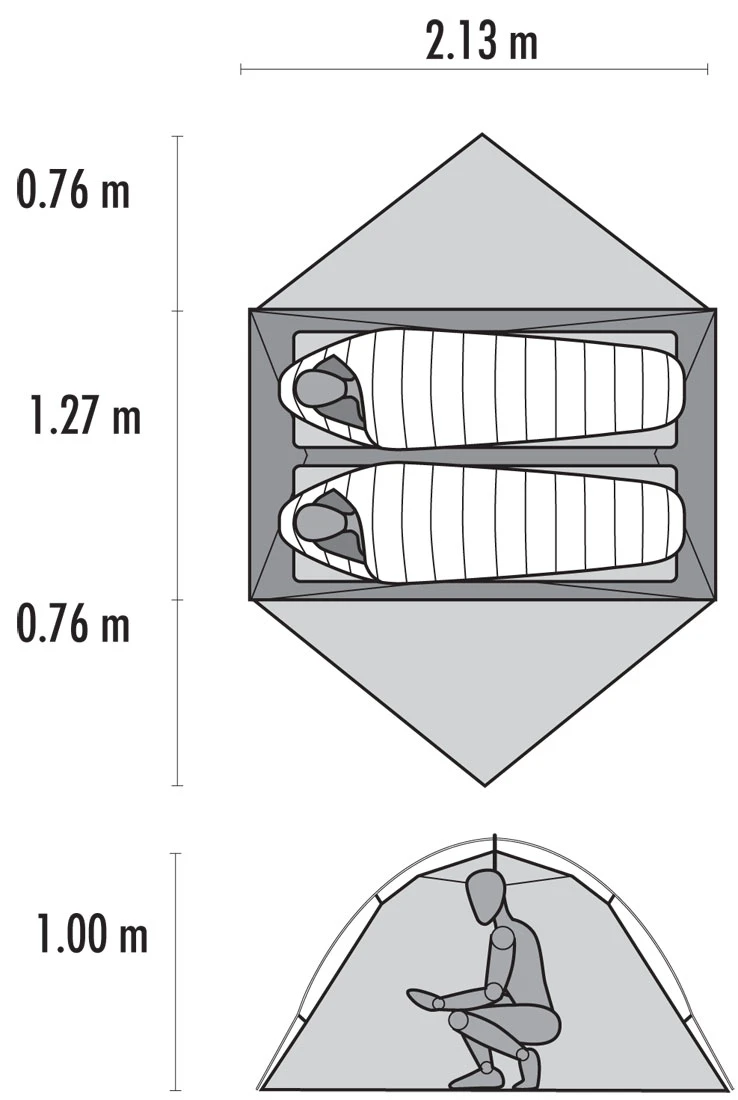 Das MSR Hubba Hubba™ NX ist ein leichtes 2-Personen-Zelt in modifizierter Kuppelform, das mit seinen 1.720 g ein sehr gutes Raum-zu-Gewichts-Verhältnis aufweist, da das Drei-Jahreszeiten-Zelt im Innenzelt komfortabel Platz für zwei Personen und dazu unter dem Außenzelt auf jeder Seite einen Vorraum für Gepäck und Schuhe bietet. Das Mesh-Innenzelt sorgt in Kombination mit dem gut belüfteteten Oberzelt für angenehme Nächte besonders in heißen Regionen. Durch die klassische Überwurfkonstruktion lässt sich das Innenzelt auch problemlos separat als Moskitoschutz aufstellen. Das macht das Hubba Hubba™ NX zu einem perfekten Zelt für Trekking-, Rad- und Paddeltouren in gemäßigten Gefilden. Für längere Touren in kalten Regionen sollten die Nutzer des Hubba Hubba™ NX sich sehr bewusst ausrüsten, da das Mesh-Innenzelt die Wärme nicht so gut hält, wie ein geschlossenes Nylon-Innenzelt.