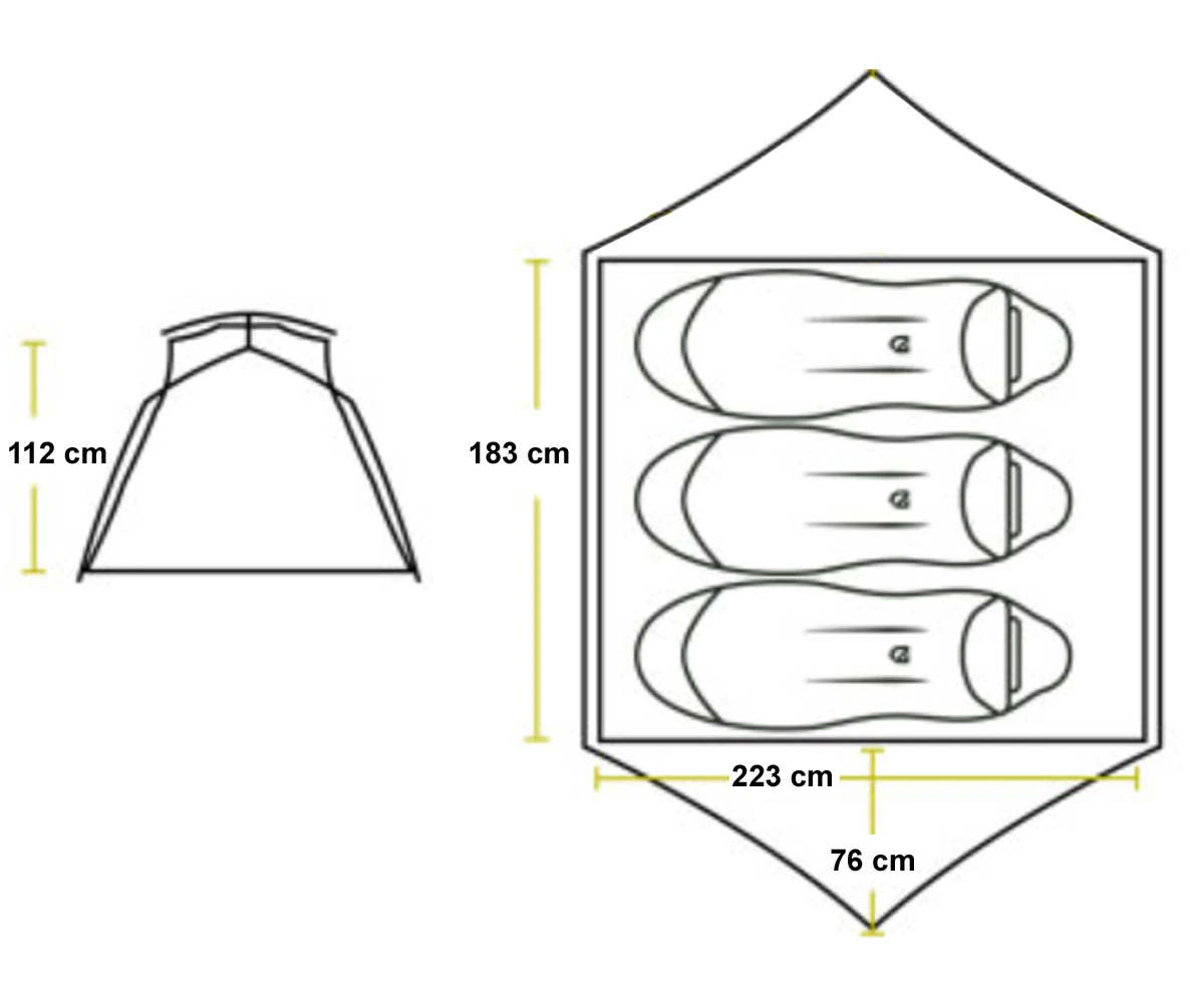 Erleuchtung. Nemo beweist mit dem Aurora™ 3P, dass ein geräumiges Zelt nicht zugleich ein schweres Zelt sein muss. Das 3-Personen-Kuppelzelt bringt, einschließlich der im Lieferumfang enthaltenen Zeltunterlage, gerade 2.850 g auf die Waage. Gedacht ist das Nemo Aurora™ 3P in erster Linie für Reisepartner, die sich zu zweit etwas mehr Platz gönnen möchten, als in einem gewichtsoptimierten 2-Personen-Zelt gemeinhin zu finden ist. Das betrifft sowohl etwas breitere Isomatten, die im 183 cm breiten Innenzelt mit rechteckigem (nicht konischem!) Grundriss problemlos Platz finden, als auch viele Ausrüstungsgegenstände, auf die man dann einen komfortabel-direkten Zugriff hat, weil sie nicht in die Vorräume “ausgelagert” werden müssen. Ein Komfort-Detail ist auch die Light Pocket™, eine kleine Tasche im Innenzelt-Himmel, deren dicht gewebter Stoff das punktuelle Stirnlampen-Licht in eine diffuse Raumbeleuchtung verwandelt, wenn die Kopflampe eingeschaltet und dort platziert wird. Das sehr gute Preis-Leistungs-Verhältnis des Nemo Aurora™ 3P entsteht unter anderem durch die mitgelieferte Zeltunterlage, die den Innenzelt-Boden vor Beschädigungen schützt und zugleich notwendiges Zubehör ist, wenn aus Gewichtsgründen das Außenzelt des Nemo Aurora™ 3P solo als Tarpzelt (also ohne Innenzelt) aufgestellt werden soll. Insgesamt ist Nemo mit dem Aurora™ 3P ein vielseitiges Camping-, Trekking- und Radtouren-Zelt für die 3-Jahreszeiten-Nutzung zu einem attraktiven Preis gelungen.