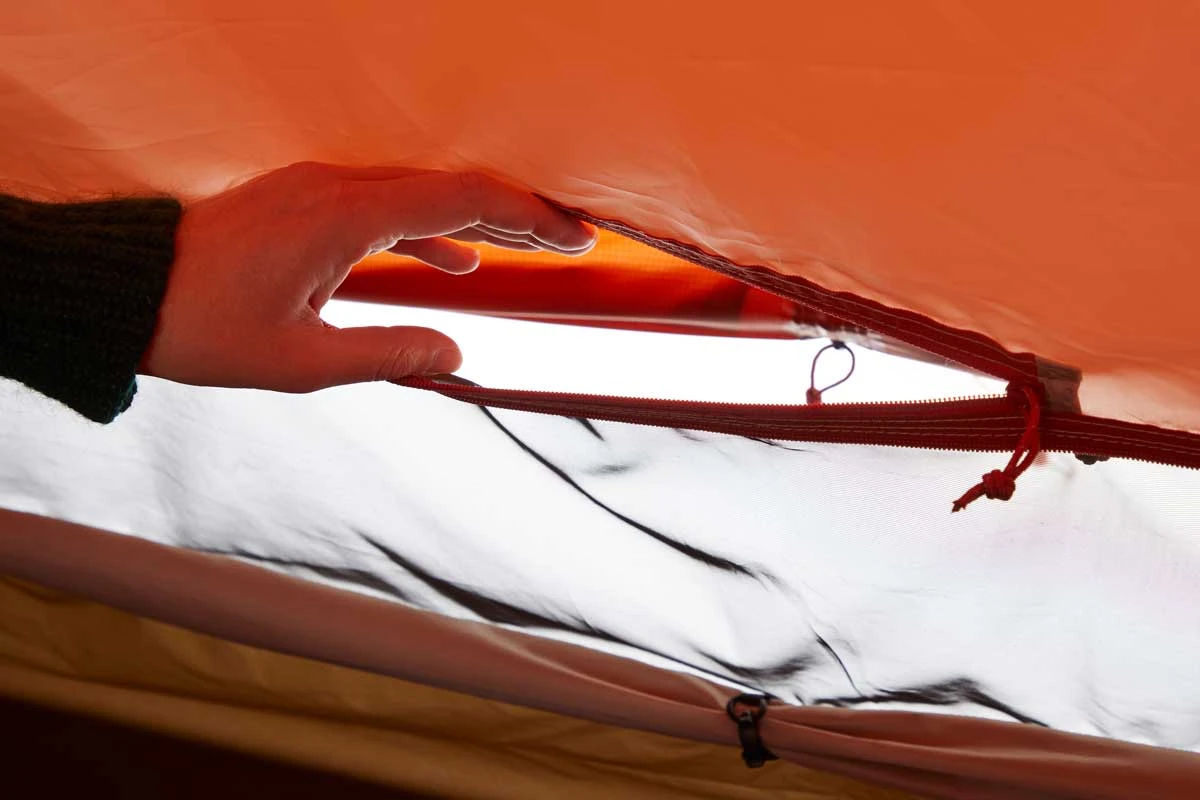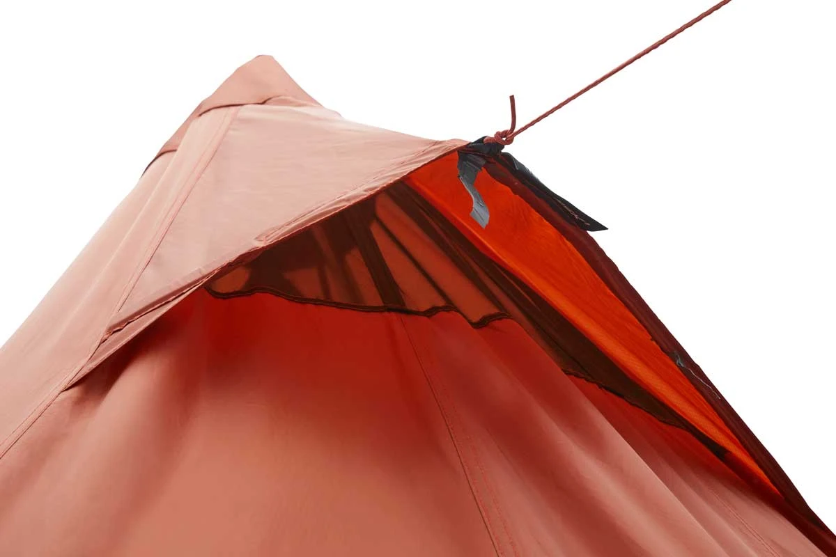 - Außenzelt mit zwei Moskitonetzfenstern im Vorraum, einem Bodenlüfter im Zeltheck sowie einem Dachlüfter in der Zeltspitze – alle verschließbar