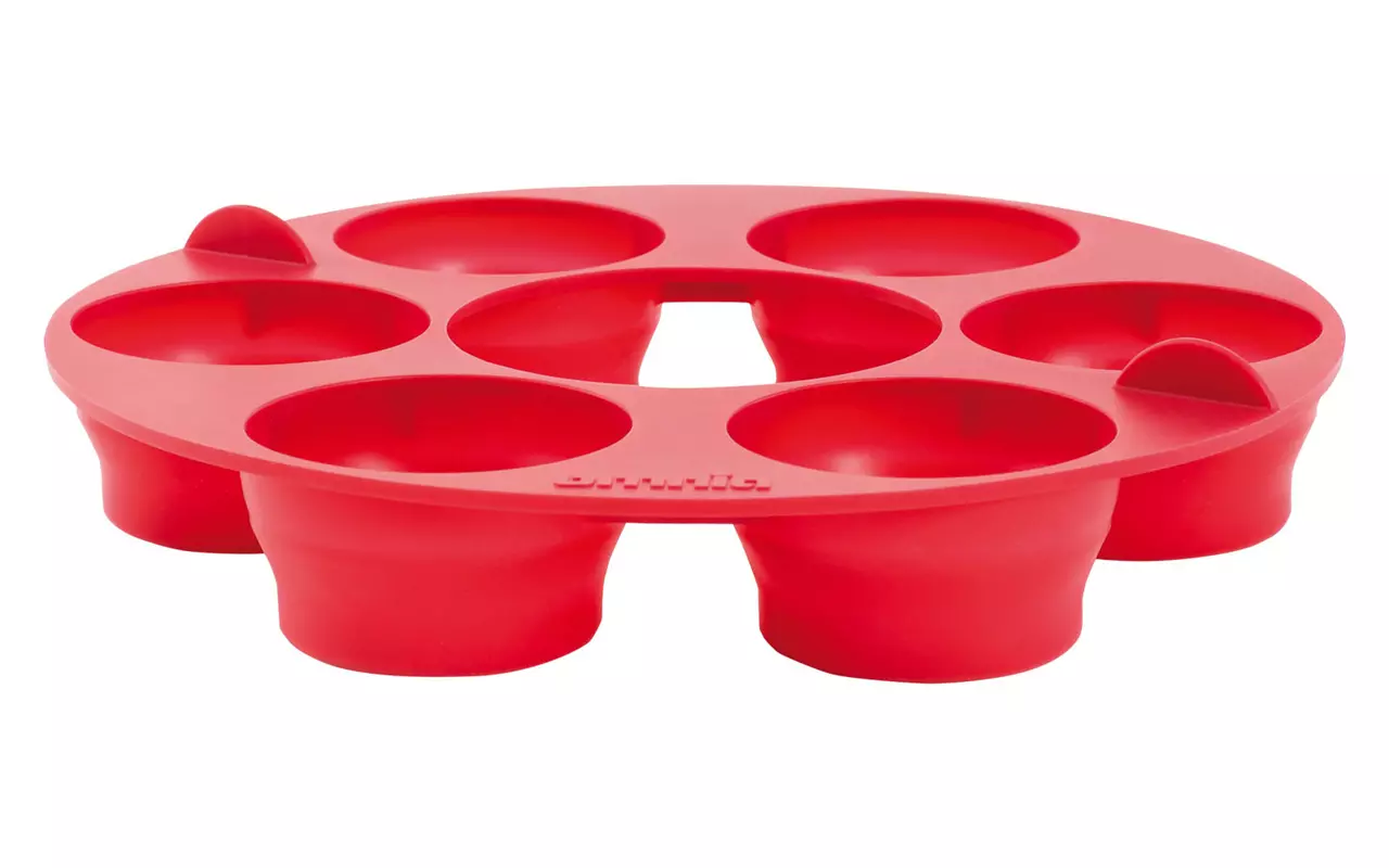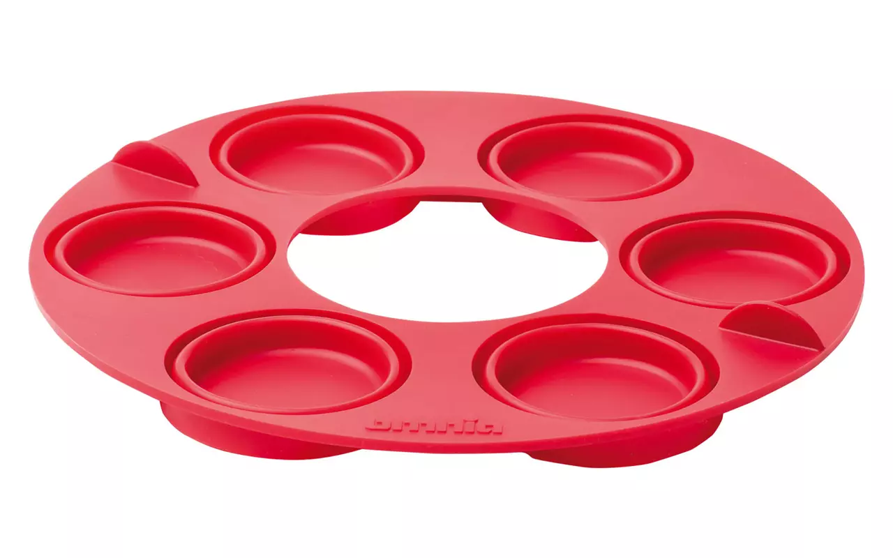 Ob herzhaft oder zuckersüß – mit der Omnia-Muffinform können 6 Muffins zubereitet werden. Die BPA-freie Silikonform ist für den Omnia-Campingbackofen maßgefertigt. Die Muffins lassen sich dank des pop-out-Effekts leicht aus der Form drücken. An eine platzsparende Aufbewahrung wurde auch gedacht, denn die flexible Form lässt sich einfach zusammenfalten. Passend dazu liefert Omnia noch vier leckere Rezepte zum Nachbacken: Schoko-Erdnussbutter-Muffins. Fetamuffins, Beerenmuffins sowie Eier-Bacon-Muffins.
