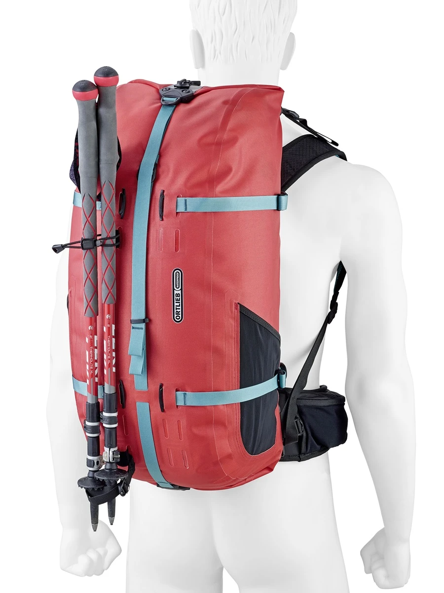 Ortlieb baut mit dem Atrack den ersten wasserdichten Rucksack, der sich wie eine Reisetasche öffnen lässt – eine intelligente und innovative Gepäcklösung made in Germany. Der Outdoor-Rucksack mit einem Volumen von 25, 35 oder 45 Litern lässt sich mit einem Reißverschluss der Länge nach öffnen. Dies gewährleistet den Zugriff auf den kompletten Innenraum und ermöglicht einen einfachen und kompletten Überblick über den gesamten Rucksackinhalt. Damit beim Be- und Entpacken des Rucksacks das Tragesystem sauber und trocken bleibt, verläuft die Öffnung zwischen den Schulterträgern. Hierdurch werden ebenfalls unerwünschte Zugriffe auf den Rucksackinhalt während des Tragens vermieden. Für den perfekten Sitz sorgen beim Tragen die längenverstellbaren Schulterträger und die gut sitzenden Hüftflossen. Damit aber nicht nur eine einfache Packlogistik und ein gutes Tragefühl garantiert sind, sondern auch ein bedingungsloser Gebrauch bei allen Wettern gewährleistet wird, baut Ortlieb den Atrack komplett wasserdicht. Sowohl Außenmaterial als auch Reißverschluss sind so gebaut, dass sich eine extra Regenhülle als Witterungsschutz erübrigt. Das Resultat dieser neuen Gepäcklösung von Ortlieb ist maximale Flexibilität mit nur einem Gepäckstück. Der Atrack wird so zum idealen Begleiter zum Trekken, Fahrradfahren, Skitouren-Gehen, Paddeln und für Kurztrips im Großstadtdschungel.