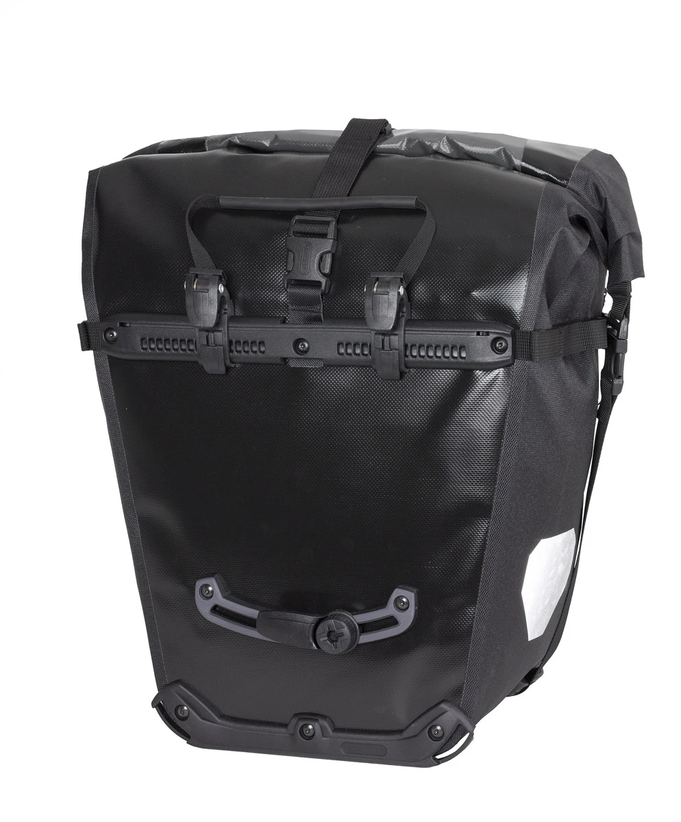 Die beste Radtasche der Welt ist nun auch die größte Radtasche der Welt! Ortlieb ist seit Jahren bekannt für seine unaufdringlichen Superlative. Hinsichtlich ihrer Langlebigkeit und Einsatztauglichkeit suchen die Ortlieb-Radtaschen vergeblich ihresgleichen. Der Back-Roller Classic ist diesbezüglich, wie sein Name schon sagt, der absolute Klassiker und hat seine Qualität bereits auf zahllosen Touren unter Beweis gestellt. Für all diejenigen, die jedoch den einen oder anderen Kubikzentimeter Stauraum mehr gebraucht hätten, kommt der Back-Roller Classic von nun an auch in der Pro-Version. Entscheidendes Merkmal ist der deutlich erweiterte Stauraum von 35 Litern pro Tasche! Eine weitere Neuerung des Back-Roller Pro Classic ist seine zusätzliche Fronttasche, in welcher sowohl Kartenmaterial als auch Trinkflaschen, nasse Wäsche etc. bequem Platz finden. Komplettiert wird die Ausstattung des Back-Roller Pro Classic durch bereits bekannte Elemente, wie seinen wasserdichten Rollverschluss, den Schultergurt, die seitlichen Reflektoren, die integrierte Innentasche sowie das bewährte QL2.1-Tragesystem, welches eine unkomplizierte Anbringung und Arretierung am Gepäckträger garantiert. Damit ist der Back-Roller Pro Classic absolut konkurrenzlos und uneingeschränkt für längere Fahrradtouren zu empfehlen. Im tapir-Blog gibt’s den Testbericht zu den Fahrradtaschen!
