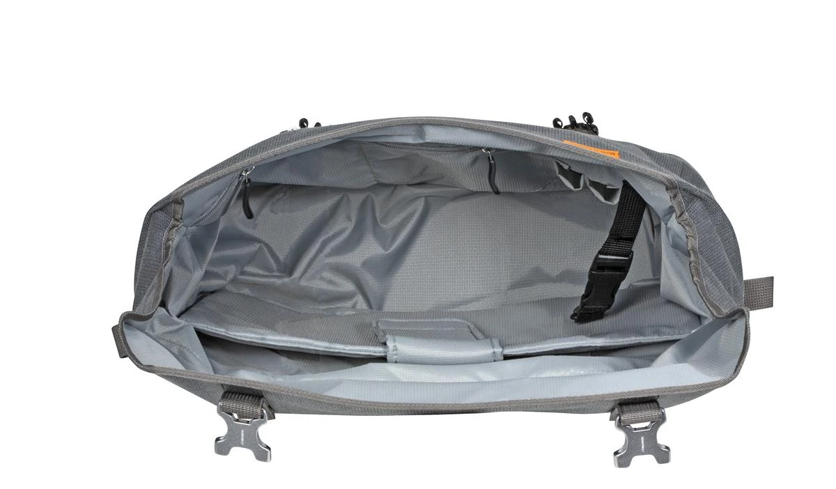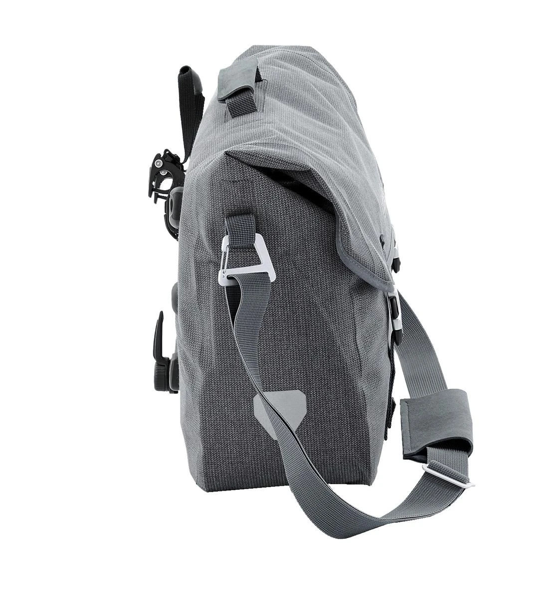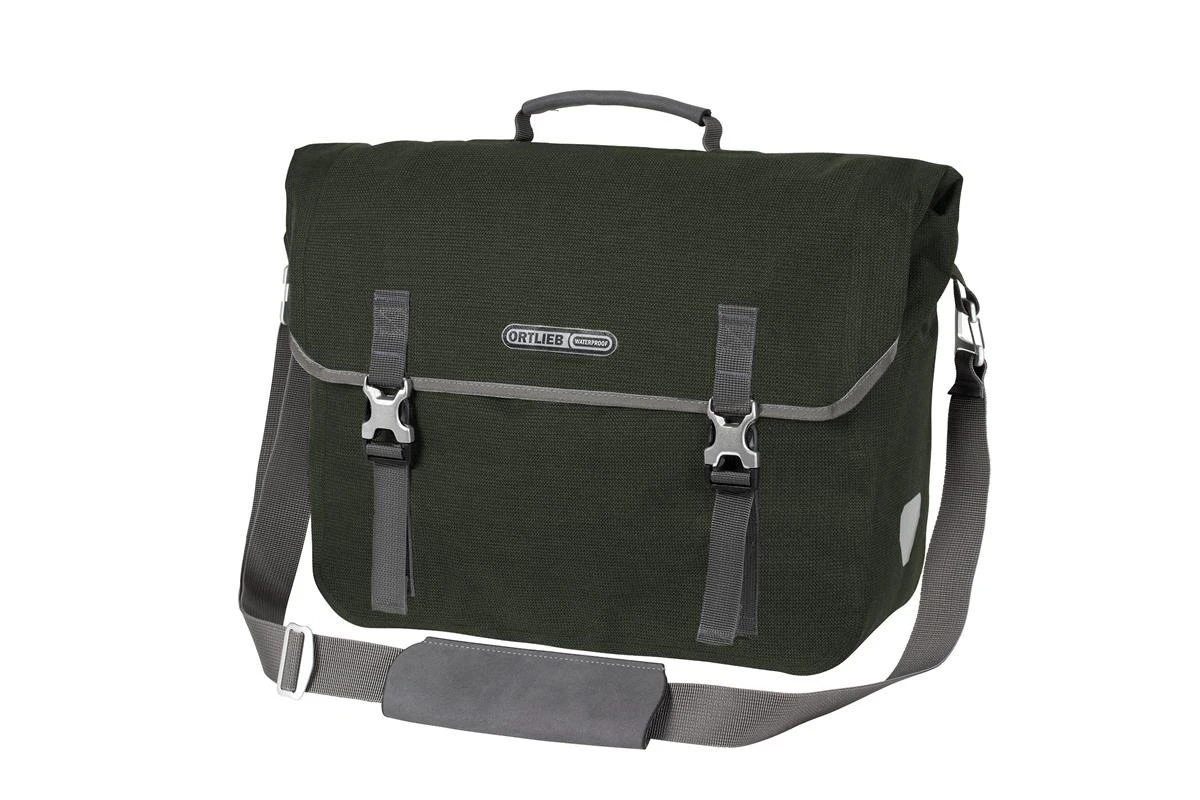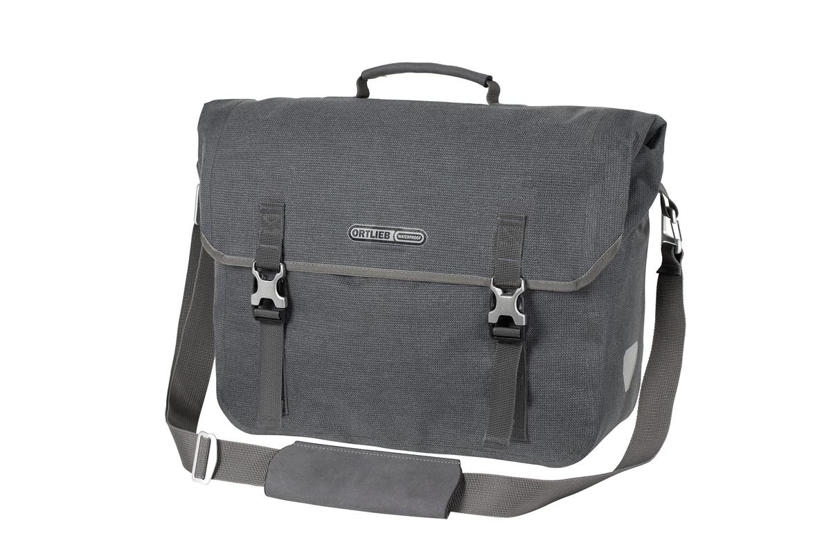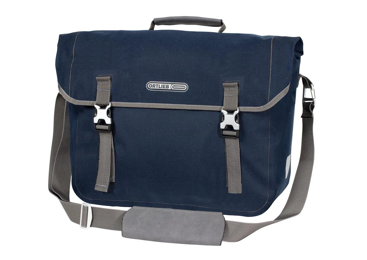Die Ortlieb Commuter-Bag Two ist eine modische Fahrrad-Aktentasche mit wasserdichter Funktion, wie man sie von Ortlieb kennt, in einem zeitlosen, urbanen Design. Das PU-beschichtete Mischgewebe aus Cordura® passt mit seiner textilen Optik perfekt zum Casual- oder Business-Outfit. Damit ist die Office-Tasche ideal für den Weg ins Büro, zur Uni oder für die City. Der schnelle Zugriff auf das Hauptfach erfolgt über den Deckelverschluss. Das Innere des Commuter-Bags ist ganz auf die Ansprüche für die Büronutzung zugeschnitten: Ein Tablet (8” oder 10”) oder Notebook kann ebenso gesondert verstaut werden wie Akten oder der Schreibblock. Schlüssel, Stifte und Co. passen griffbereit in die (allerdings nicht wasserdichte) Außentasche. Die Fahrradaktentasche ist mit dem praktischen, selbstarretierenden Ortlieb Quick-Lock 2.1-System zur Gepäckträgerbefestigung ausgestattet. Dieses erlaubt ein komfortables und schnelleres Einhängen der Radtasche: Beim Einhängen arretieren die Befestigungshaken selbsttätig – und entriegeln sich automatisch beim Anheben der Tasche. Ausstattungselemente wie ein Tragegriff, ein abnehmbarer Schultergurt und seitliche Reflektoren vervollständigen die urbane Ortlieb-Radtasche.