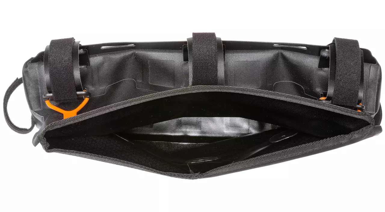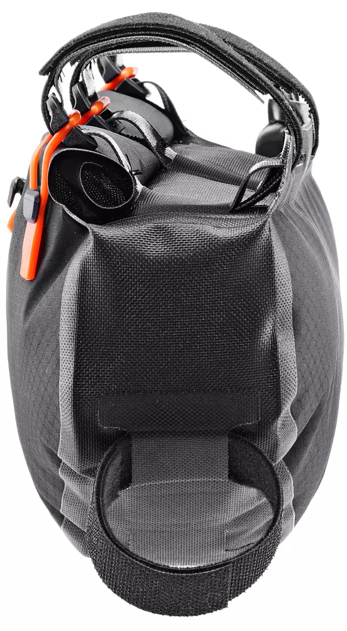 Das Ortlieb Frame-Pack RC Toptube ergänzt dein Bikepacking-Setup um eine praktische Rahmentasche, bei der du trotz Gepäckunterbringung nicht auf die Mitnahme von Trinkflaschen verzichten möchten. Ebenso ist die wasserdichte Rahmentasche mit Rollverschluss ideal für alle Fullsuspension-Mountainbikes, deren Dämpfer den Platz im Rahmendreieck limitieren. Durch den wasserdichten Rollverschluss, der mit Silikonringen gesichert wird, erreicht die Tasche aus Ortliebs Bikepacking-Serie den IP64-Standard und bewahrt dadurch das Equipment vor einem unfreiwilligen Bad. Das Frame-Pack RC Toptube ermöglicht die Unterbringung schwerer Ausrüstungsgegenstände wie Zeltgestänge, Werkzeug oder Proviant. Die Postition verhilft zu einem niedrigen Schwerpunkt am Rad und damit zu besserer Kontrolle im Gelände. Die variabel zu positionierenden, stabilen und haftstarken Klettverschlüße ermöglichen eine einfache und unkomplizierte Montage am Oberrohr des Rades.