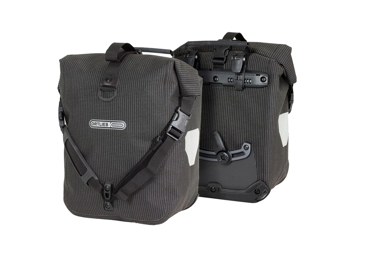Eine brillante Idee für alle Ganzjahres- und Schlechtwetter-Radler: Die Ortlieb High Visibility Line verbessert die Sichtbarkeit des Radfahrers für andere Verkehrsteilnehmer enorm. Denn die High Visibility Taschen haben nicht nur Reflektoren – sie sind selbst ein einziger großer Reflektor. Die Sport-Roller High-Vis Ql2.1 (ehemals Front-Roller) sind vielfältig einsetzbar und, wie vom Hersteller gewohnt, robust, leicht und absolut dicht. Wenn das Fahrrad mit Vorder- und Hinterradpacktaschen bestückt wird, ist die Last besser verteilt und das Rad läuft insgesamt ruhiger. Neu ist die Ausstattung mit dem QuickLock2.1-Befestigungssystem, das sich in Sekundenschnelle und ohne Werkzeug justieren lässt. Außerdem ist es so für Gepäckträger mit einem Rohrdurchmesser von bis zu 16 mm nutzbar. Die entsprechenden Reduzierstücke in 8, 10 und 12 mm für dünnere Rohre liegen selbstverständlich bei. Die praktischen Rollverschlüsse verschließen die Vorderradtasche wasser- und staubdicht. Wie bei ihren großen Geschwistern, den Back-Roller, sind auch die Sport-Roller High-Vis mit einer Innentasche und Schultergurten ausgestattet, sodass sie sowohl auf ausgedehnten Fahrradtouren als auch im Alltag absolut verlässliche Begleiter sind.