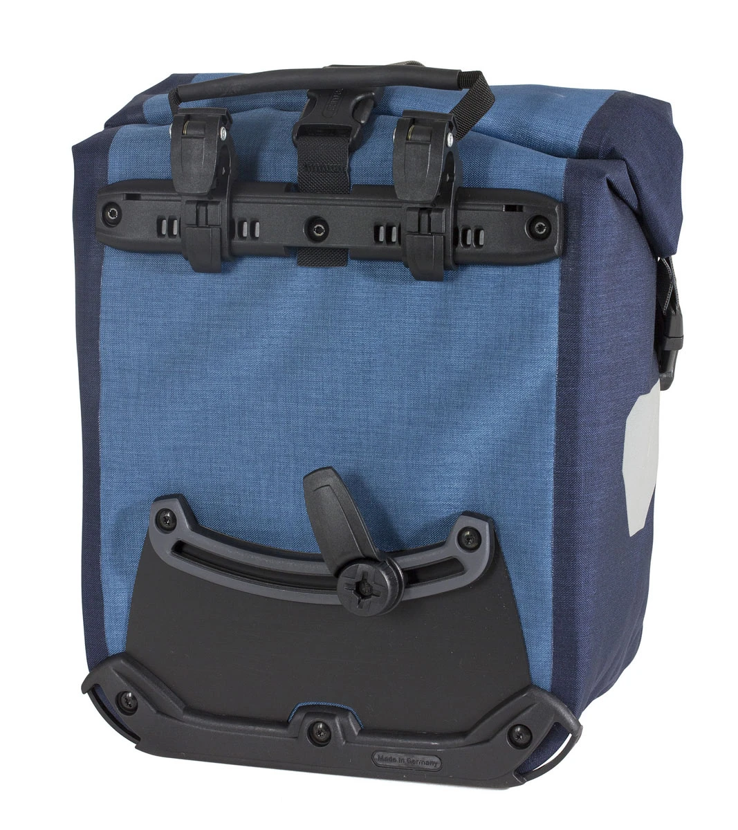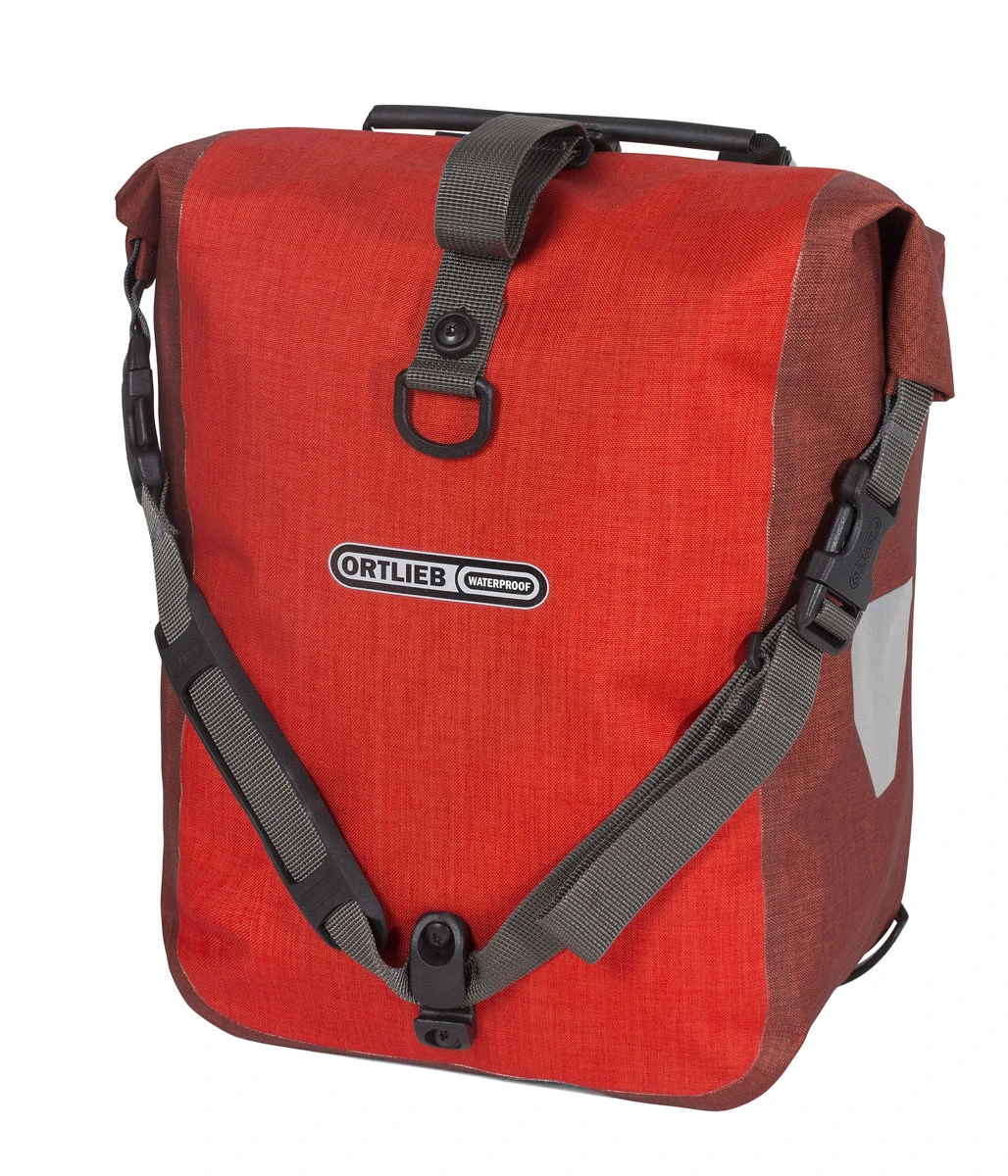 Als perfekte Ergänzung zum Back Roller Plus von Ortlieb oder als Hinterradtasche für Kinderfahrräder: Die Sport-Roller Plus (ehemals Front-Roller) sind vielfältig einsetzbar und, wie vom Hersteller gewohnt, robust, leicht und absolut dicht. Wenn das Fahrrad mit Vorder- und Hinterradpacktaschen bestückt wird, ist die Last besser verteilt und das Rad läuft insgesamt ruhiger. Neu ist die Ausstattung mit dem QuickLock2.1-Befestigungssystem, das sich in Sekundenschnelle und ohne Werkzeug justieren lässt. Außerdem ist es so für Gepäckträger mit einem Rohrdurchmesser von bis zu 16 mm nutzbar. Die entsprechenden Reduzierstücke in 8, 10 und 12 mm für dünnere Rohre liegen selbstverständlich bei. Die praktischen Rollverschlüsse verschließen die Vorderradtasche wasser- und staubdicht. Wie bei ihren großen Geschwistern, den Back-Roller Plus, sind auch die Sport-Roller Plus mit einer Innentasche und Schultergurten ausgestattet, sodass sie sowohl auf ausgedehnten Fahrradtouren als auch im Alltag absolut verlässliche Begleiter sind.