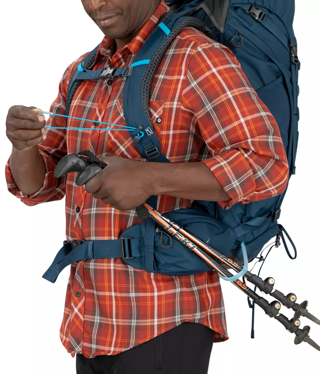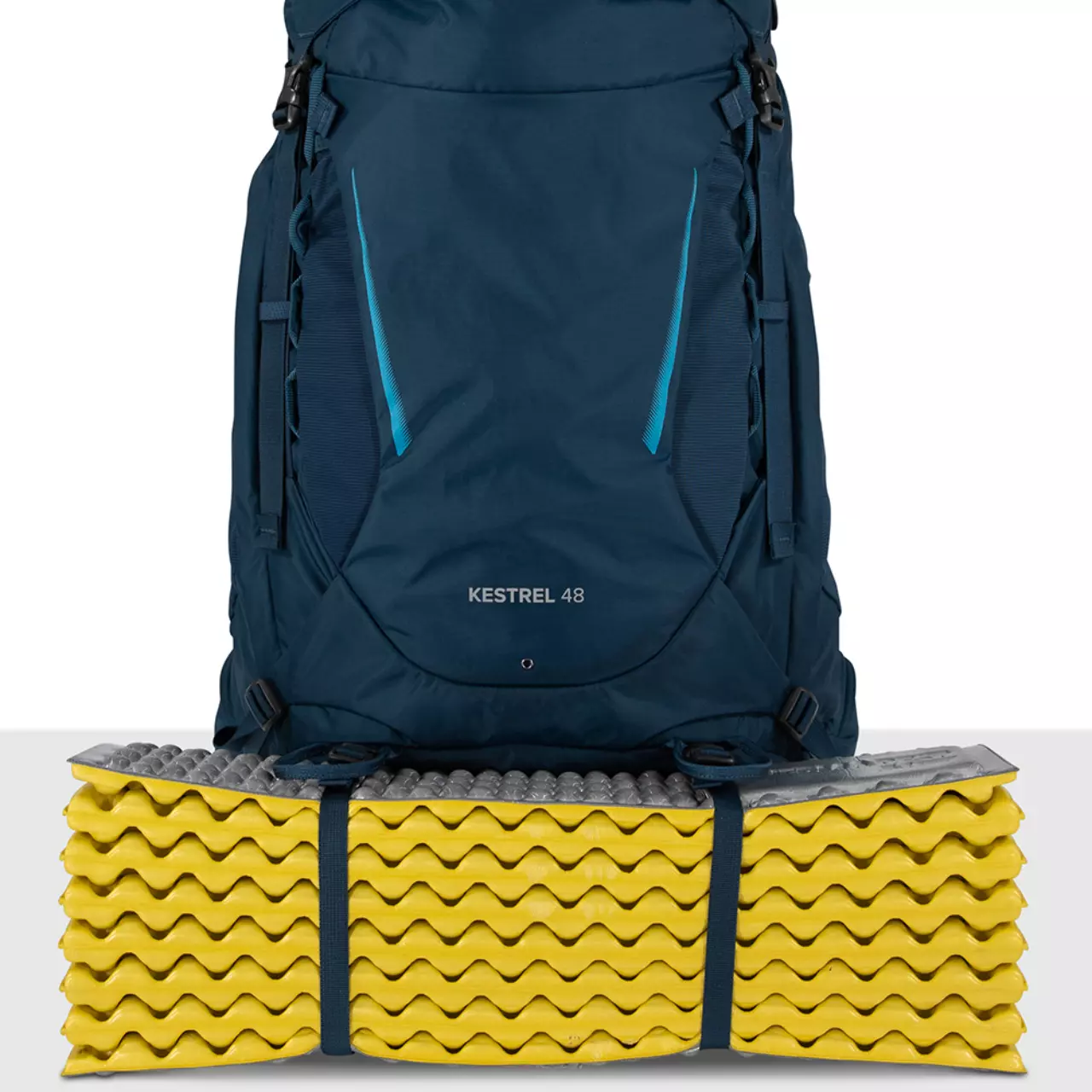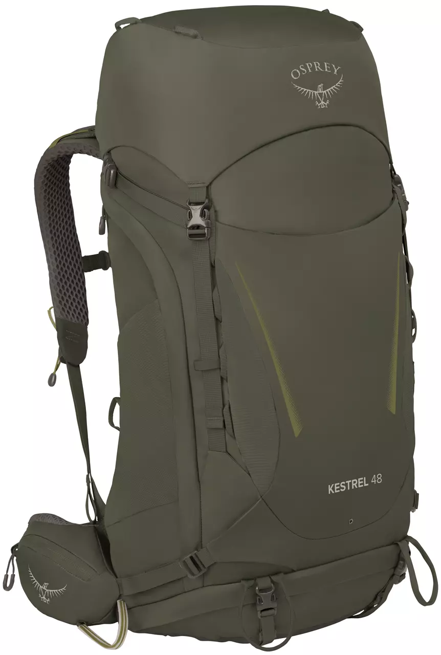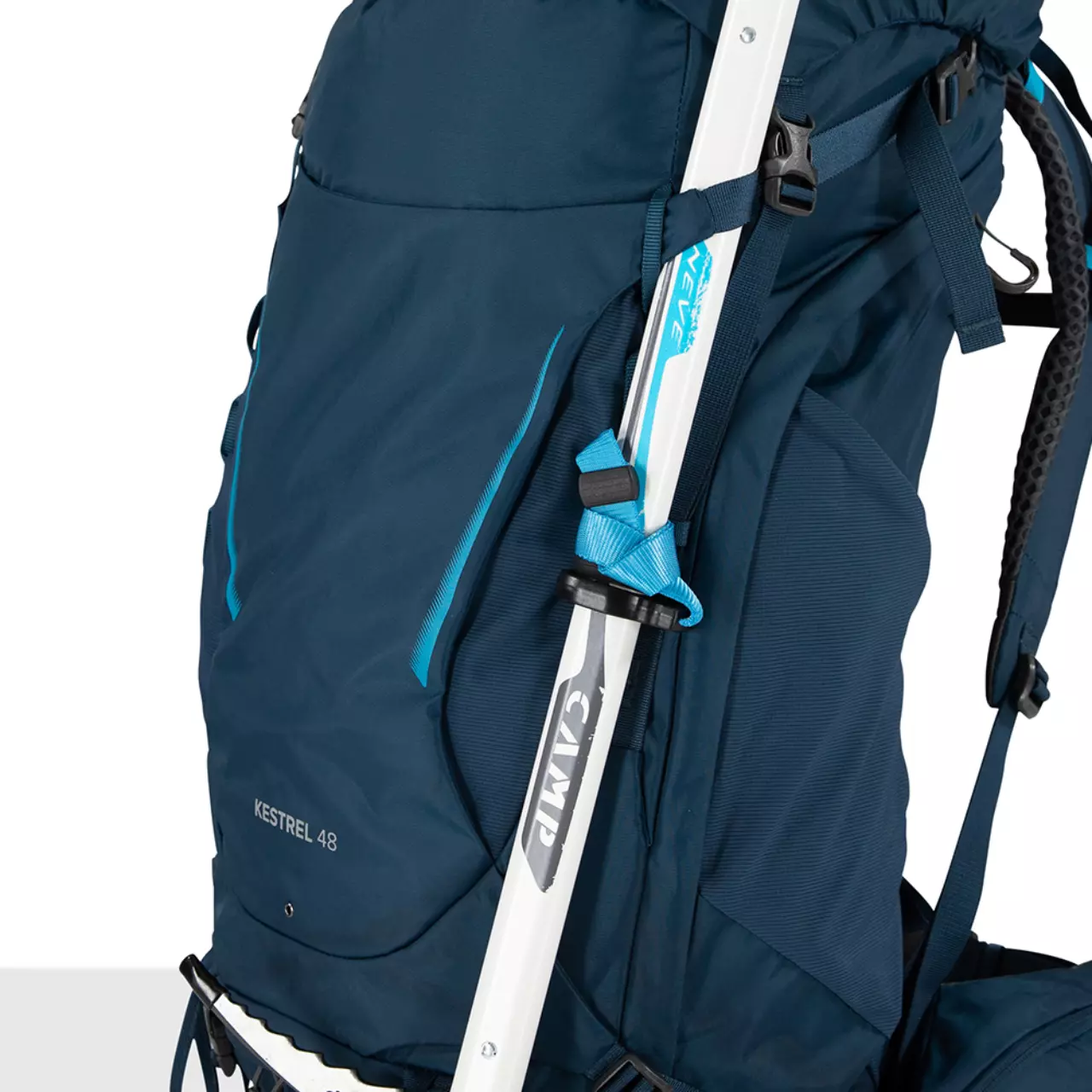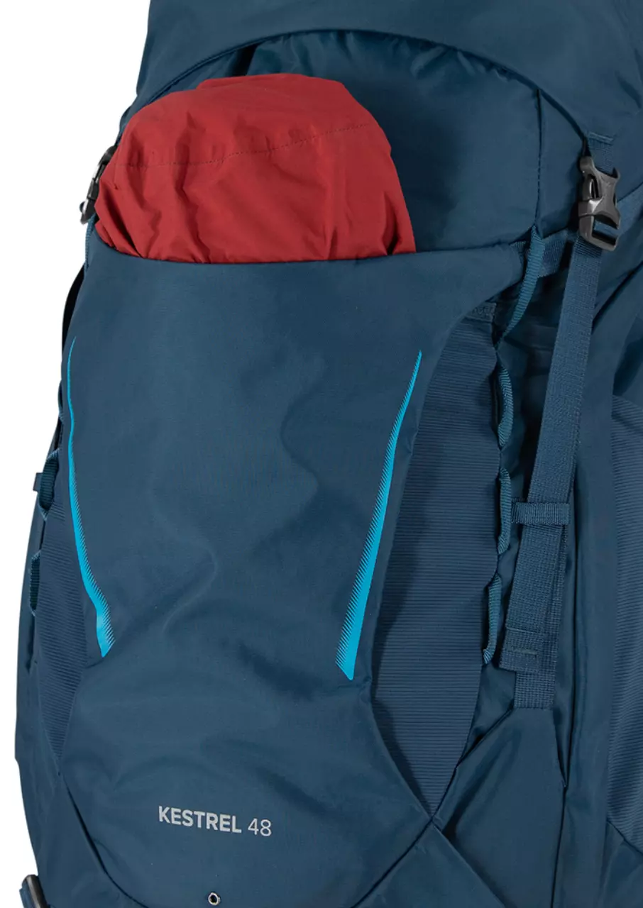Der Kestrel 48 Osprey bietet Anhängern der Leichtgewichtsfraktion und Packminimalisten genug Stauraum für moderat lange Trekkingtouren, für alle anderen ist er für Hüttentouren, Mehrtageswanderungen und lange Pilgerwege der ideale Lastenesel. Die Aufteilung des Kestrel 48 entspricht der eines klassischen Wanderrucksacks: Er hat die Hauptöffnung unter dem Deckel und ein separat zugängliches Bodenfach mit optionalem Zwischenboden, in dem ein kleiner Schlafsack seinen Platz finden kann. Zusätzlich wurde er mit einem seitlichen Zugang aufs Hauptfach ausgestattet. Diverse Befestigungsmöglichkeiten und Materialschlaufen, eine integrierte Regenhülle und das fest am Rücken sitzende, hinterlüftete AirScape™-Tragesystem runden diesen vielfältig nutzbaren Wanderrucksack ab. Mit dem einzigartigen Stow-on-the-Go™-System ist das lästige Abnehmen des Rucksacks zum Verstauen der Trekkingstöcke passé. Komfort pur!