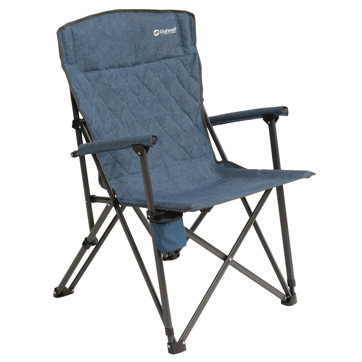 Getränkehalter. Der Outwell Derwent Campingstuhl hat neben einer bequemen, gepolstersten Lehne auch einen unter der Sitzfläche verstaubaren Getränkehalter. Dort läßt sich das Lieblings-Urlaubs- oder Festivalgetränk problemlos parken falls man wegen übermächtiger Müdigkeit eine senkrechte Aufbewahrung in der Hand nicht mehr gewährleisten kann. In einem solchen Fall hilft die Polsterung im oberen Bereich der Lehne, den Kopf weich abzulegen. Der Outwell Derwent Stuhl kann mit Hilfe der mitgelieferten Tragetasche leicht zu jedem beliebigen Ort des Kultur- oder Getränkekonsums getragen werden. Der Faltstuhl ist in Sekundenschnelle aufgebaut und zusammengeleget und passt in fast jeden Kofferraum.