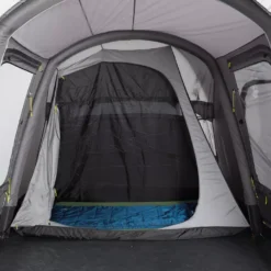 Gute-Nacht-Bus. Das optionale Innenzelt für das Outwell Jonesville 290SA und das Outwell Wolfburg 380A ist im Handumdrehen in die passenden Bus-Vorzelte eingeknöpft und bietet dann zwei Menschen einen insektengeschützten, abgedunkelten Schlafraum. Für Belüftung sorgt die große Moskitonetz-Tür, die aber für mehr Privatsphäre auch abgedeckt werden kann.