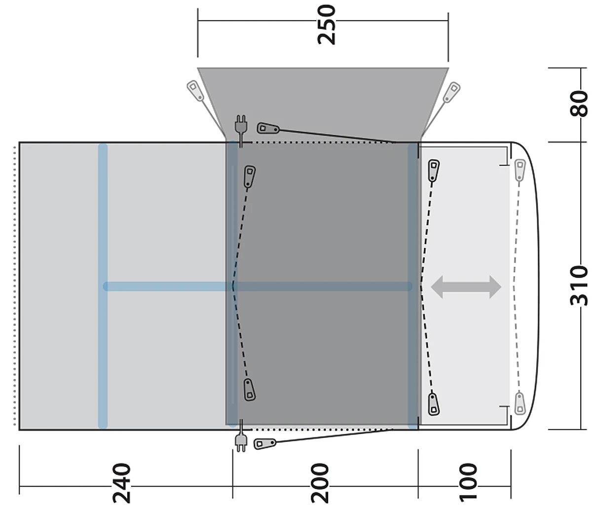 - kompatibel mit Campingbussen von 175 – 200 cm Höhe