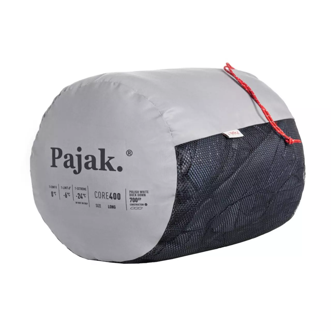 Pajak ist eine polnische, familiengeführte Firma, die sich auf die Herstellung von Daunenprodukten spezialisiert hat und ihr kleines, aber erlesenes Sortiment ausschließlich in Polen produziert. Der Core 400 ist ein bequem geschnittener, leichter Dreijahreszeitenschlafsack, der mit hochwertiger polnischer Entendaune gefüllt ist. Mit einem Komfortbereich von 0 °C bis -6 °C fühlt der Core sich im Frühjahr und Herbst am wohlsten, kann den kompletten Sommer genutzt werden und in Kombination mit einem warmen Inlett oder zweiten Schlafsack ist auch ein Wintereinsatz möglich. Basis für das leichtgewichtige Wärmekraftwerk ist ein sehr leichtes und robustes Außenmaterial in Kombination mit einer sehr hochwertigen Entendaune mit hoher Bauschkraft. Die gleichzeitig sehr gute Komprimierbarkeit des Materials führt zu einem erfreulich kleinen Packmaß. Die Kammerkonstruktion mit schrägen Kammern verhindert Kältebrücken zuverlässig. Der leichtgängige 2-Wege-Reißverschluss ist nicht seitlich, sondern auf der Oberseite positioniert, was ihn für beide Hände leicht erreichbar macht. Ein Klemmschutz und eine gefütterte Abdeckleiste sorgen für Wärme und perfektes Handling. Die dicht anliegende Kapuze wird durch einen innenliegenden Wärmezug in Höhe der Schulter unterstützt, sodass von Kopf bis Fuß keine Wärme entfleuchen kann, wenn es nicht ausdrücklich gewünscht ist. Das im Kopf- und Fußbereich farblich abgesetzte Material ist wasserdicht. Eine Innentasche und Ösen zum Aufhängen und Auslüften ergänzen den Core 400, den es in drei verschiedenen Liegelängen gibt.