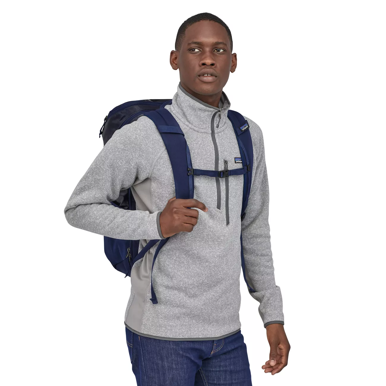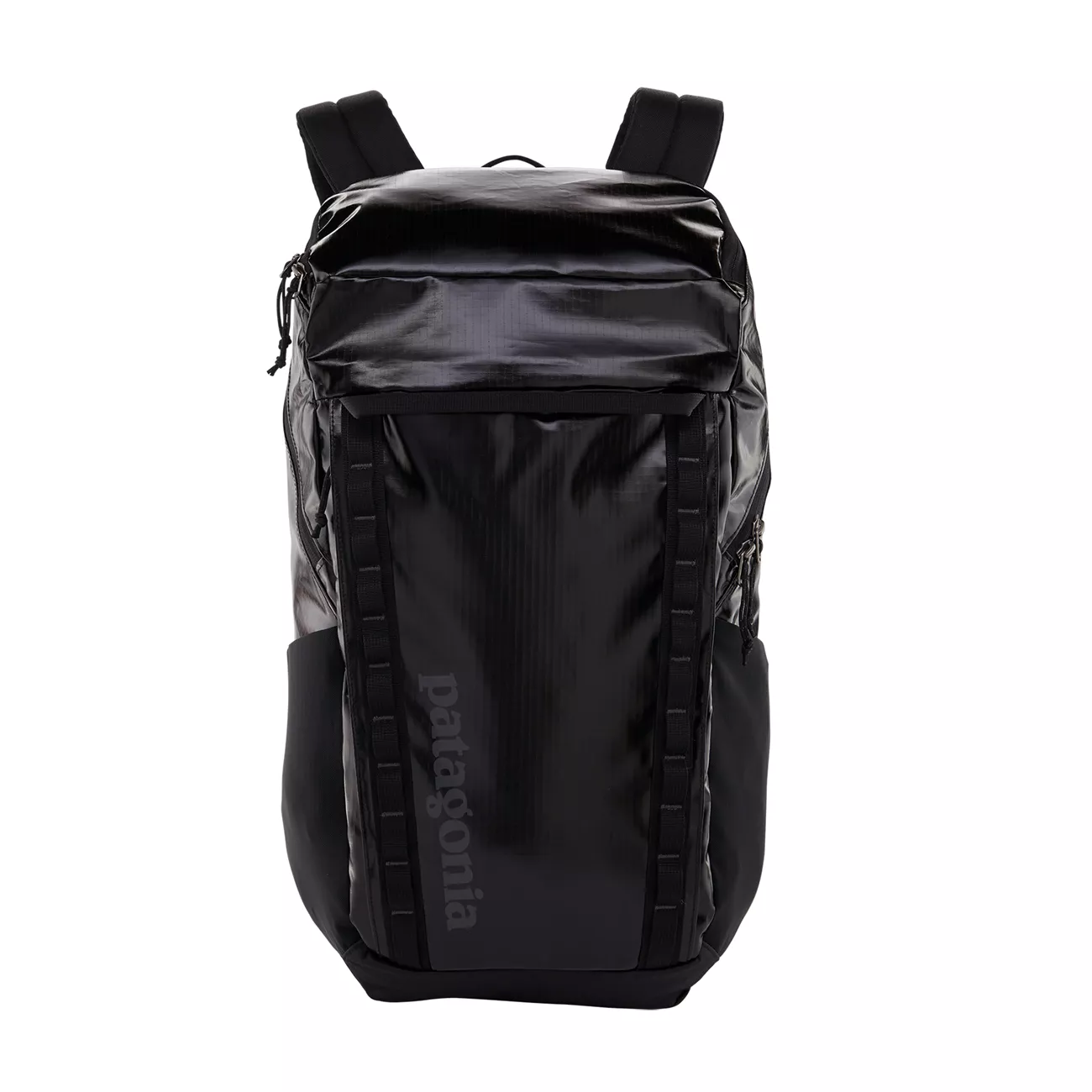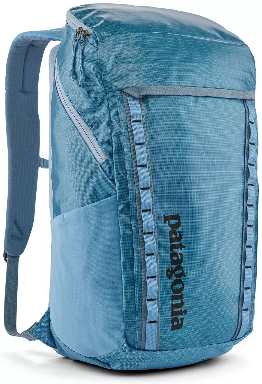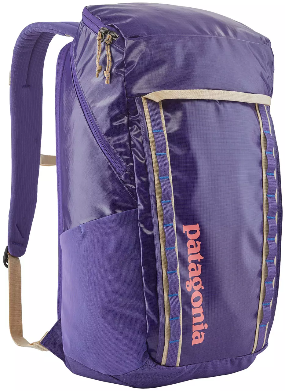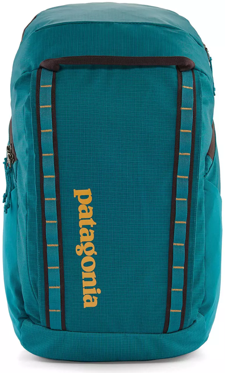 Formstabil und extra robust: Der Tagesrucksack Black Hole Pack 32L von Patagonia ist aus sehr widerstandsfähigem Ripstop-Polyester gefertigt, mit einer wetterfesten TPU-Beschichtung sowie DWR-Imprägnierung versehen und somit auf der Fläche dieses Materials auch wasserdicht. Die Reißverschlüsse sind allerdings nicht wasserfest, womit bei Regenwetter eine zusätzliche Regenhülle notwendig wird. Die ungewöhnliche Deckelklappenlösung mit einem umlaufenden Reißverschluss bietet einen guten Zugriff auf das Hauptfach, in welchem man seine Sachen gut sortieren kann. Das gepolsterte Laptopfach nimmt Notbooks bis zu einer Größe von 15 Zoll auf und kann mit einem Riemen fixiert werden. Gelegen ist es hinter dem Rückenteil, über einen umlaufenden Reißverschluss erreichbar sowie ganz aufklappbar. Sollte das Notebook zu Hause bleiben, weil ein Wanderausflug in die Berge führt, kann ein Trinksystem in dieses Fach gesteckt werden und schon kann es losgehen. Eine größere, abgedeckte Reißverschlusstasche auf der Vorderseite sowie die Flaschenhalterungen an den Seiten bieten zusätzlichen Stauraum beim Black Hole Pack 32. Die ausgefallene Farbwahl macht den Rucksack zu einem optischen Hingucker auf allen Straßen. Das Black Hole Pack 25L von Patagonia ist ein bequemer Begleiter für den Alltag und Tageswanderungen, in dem du alles nötige unterbringst und deine elektronischen Gadgets schützen kannst.