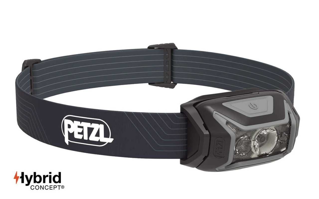 Die kompakten Stirnlampen der ACTIVE-Serie gewährleisten eine hohe komfortable Leuchtkraft, lange Leuchtdauer und eine Kombination der Lichtkegel, um vor allem in bewegungsfreudigen Outdooreinsätzen für Durchblick im Dunkeln zu sorgen. So ist die aufladbare Stirnlampe Actik von Petzl mit einer Leuchtkraft von 450 Lumen und einem kombinierten Lichtkegel ideal für dynamische Outdoor-Aktivitäten wie Bergsteigen, Joggen, Skilaufen, Wandern und Radfahren geeignet. Die Hybrid-Lampe wird mit 3 AAA-Batterien geliefert, kann aber auch mit einem über USB-Anschluss aufladbaren CORE-Akku (Zubehör, welches nicht im Lieferumfang enthalten ist) betrieben werden. Das rote Licht erhält die Dunkeladaptation des Auges und verhindert, dass andere Personen in der Gruppe geblendet werden. Durch ihren phosphoreszierenden Reflektor ist die Stirnlampe im Dunkeln schnell zu finden. Bedient wird die Kopflampe Actik 450 über einen Schalter mit Druckknopf auf dem Gehäuse, welches je nach Bedarf schwenkbar und natürlich spritzwassergeschützt ist (IPX4). Über die LED-Anzeige beim Ein- und Ausschalten der Lampe lässt sich die verbleibende Akkulaufzeit kontrollieren. Natürlich soll sich die Actik im Rucksack nicht versehentlich einschalten, was Petzl mit einer LOCK-Funktion verhindert. Wenn die lange Wanderung geschafft ist und der Rückzug ins Zelt ansteht, lässt sich die Lampe mittels Transportetui schnell in eine kleine Laterne umwandeln und spendet für ein paar Seiten des Lieblingsbuches Licht. Mit drei Weißlicht-Stufen, rotem Dauer- und Blinklich sowie ihrem gut durchdachten Aufbau ist die Actik 450 ein zuverlässiger Begleiter für zahlreiche Abenteuer.