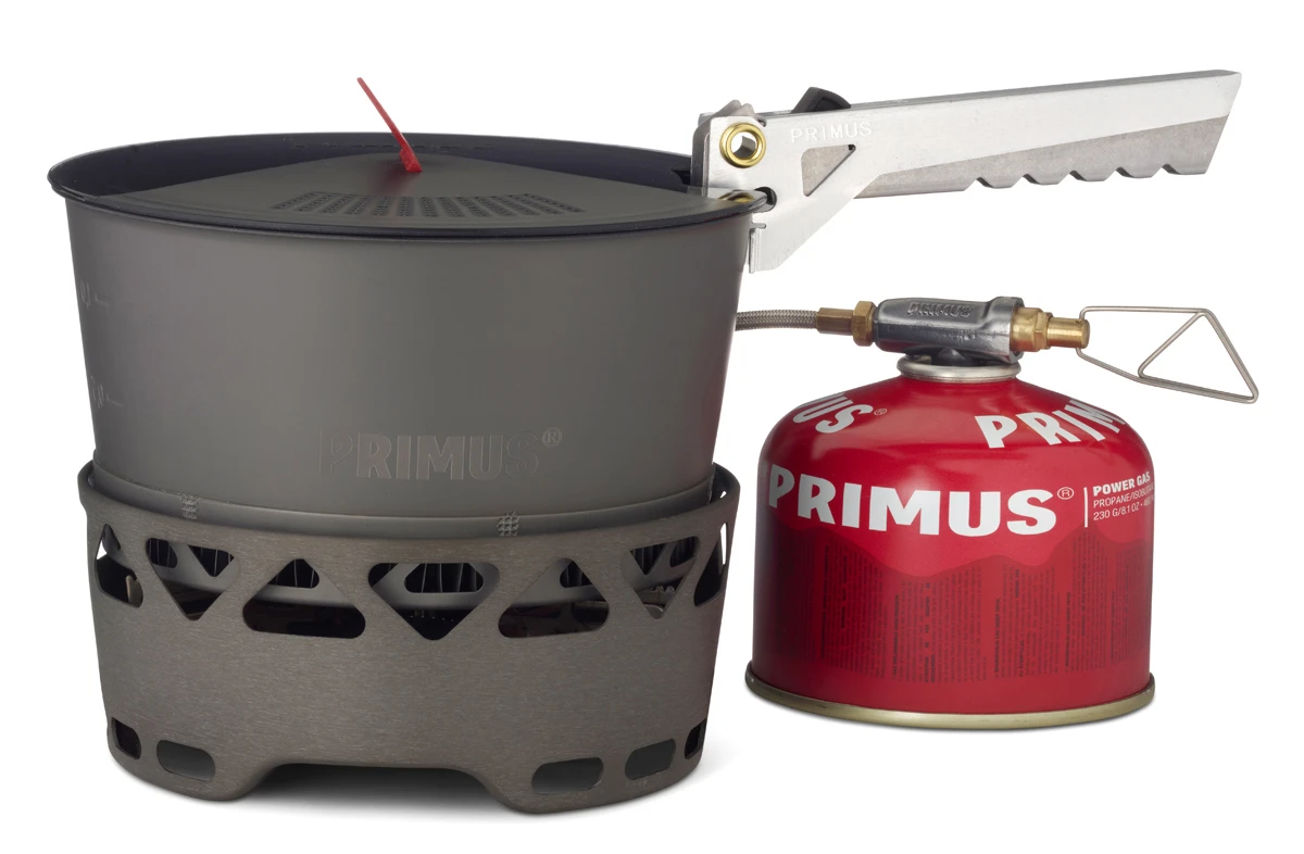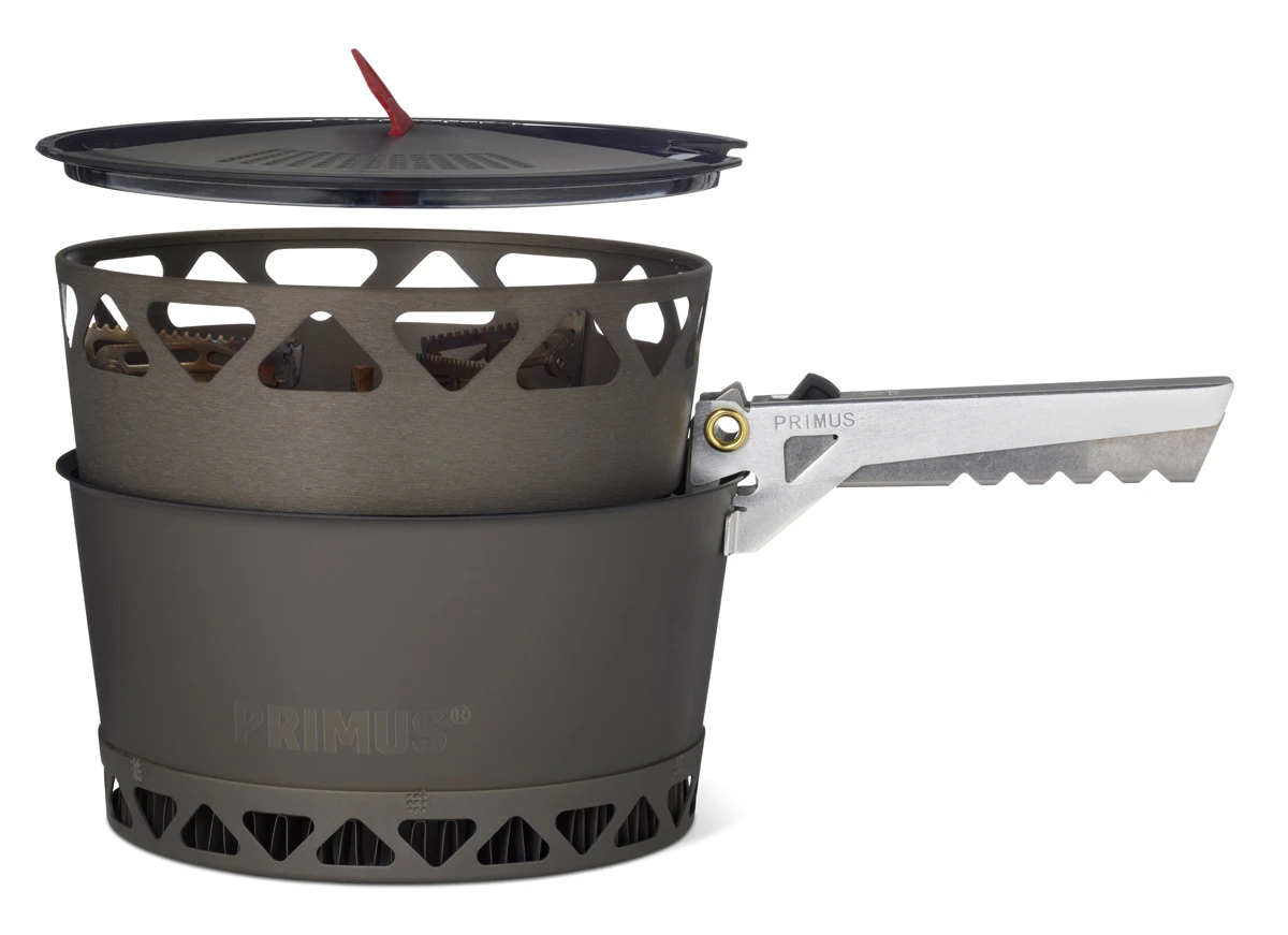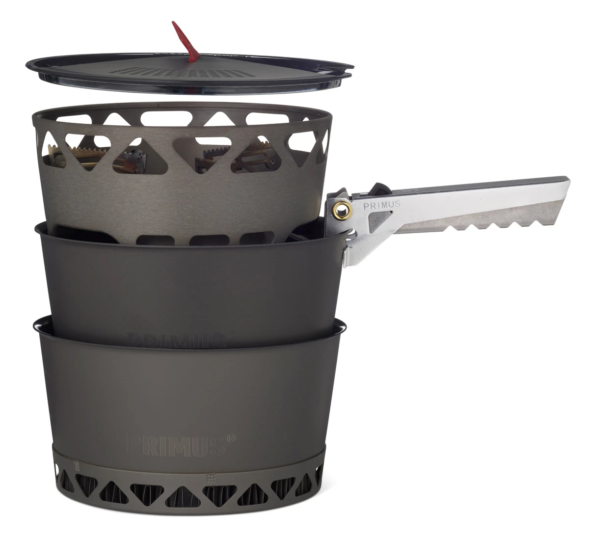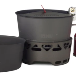 Ein durchdachtes Kochsystem für leistungsbewusste Trekker ist das PrimeTech Stove Set 2,3 Liter von Primus. Herzstücke des effektiven Kochsets vom schwedischen Outdoor-Experten sind zum einen ein Topf mit Wärmetauscher und zum anderen ein Windschutz, der die Brennerflamme vor Verwehungen schützt. Die Oberflächenvergrößerung an der Unterseite des Wärmetauschertopfes führt zu einer um ca. 50 % verkürzten Kochzeit – das spart Brennstoff, weshalb weniger Gaskartuschen auf Tour mitgenommen werden müssen. Weiterhin ist der Wärmetauscher-Topf mit einer keramikbasierten Antihaftbeschichtung ausgestattet, die auch die Zubereitung etwas anspruchsvollerer Speisen ermöglicht. Der zweite Topf des Primus-Kochsystems besteht aus hart eloxiertem Aluminium, ist demnach leichtgewichtig, formstabil und kratzfest. Beide Töpfe haben ein Volumen von 2,3 Litern, sind mit einer innenseitigen Skala ausgestattet und ineinander stapelbar. Das PrimeTech Stove Set ist daher geeignet für Gruppen von zwei bis fünf Personen. Weitere Bestandteile des Kochsystems sind eine Topfzange, die zum Greifen beider Töpfe dient, und ein hitzebeständiger Deckel mit Ausgusssieb. Besonders begeisternd ist die geringe Betriebslautstärke des Primus-Kochers: Während andere Modelle schon mal ins Fauchen geraten, bleibt hier der Geräuschpegel so gering, dass man in aller Ruhe den Tourentag Revue passieren lassen kann beim Kochen. Allerdings muss man fix sein, denn obwohl der Brenner mit einer energiesparenden Leistung von 2000 Watt im oberen Mittelfeld liegt, bringt er das Wasser beeindruckend schnell zum Kochen. In Sachen Bedienfreundlichkeit kann das PrimeTech Stove Set ebenfalls überzeugen: Die Gaszufuhr ist am kartuschenseitigen Brennstoffschlauch-Ende fein regulierbar und die patentierte Konstruktion verhindert Stichflammen, falls der Kocher aus Versehen umfallen sollte. Das macht das Set zum hervorragenden Begleiter für Touren mit Kindern oder Haustieren. Da beim PrimeTech Stove Set Windschutz und Brenner integriert sind, ist der Kocher blitzschnell aufgebaut und einsatzbereit: Einfach den Windschutz aus dem Topf nehmen, Kocher mit Gaskartusche verbinden, Brenner anzünden und schon kann’s losgehen! Für den Transport können alle Teile praktisch ineinandergestapelt und in dem isolierenden Packbeutel verstaut werden. Mit dem geringen Packmaß und Gewicht (870 Gramm) kann man mit diesem Primus-Kochsystem wirklich nichts verkehrt machen: Es lässt sich für Rad- und Bootsreisende sowie für Rucksacktourende bequem tragen.