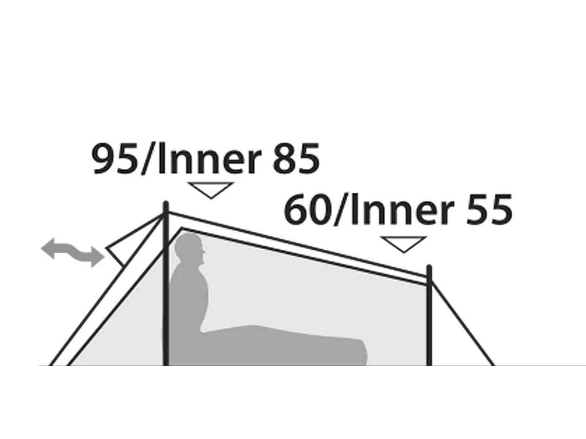 Pfeilschnell aufgebaut. Robens gibt seinem 1-Personen-Zelt Arrow Head zwei farblich codierte Gestängekanäle, vorgebogene Gestängebögen, ein eingehängtes Innenzelt, nachspannbare Heringsschlaufen und vormontierte Abspannleinen mit Leinenspannern mit und sorgt so dafür, dass das kleine Tunnelzelt von einer Person im Handumdrehen zu errichten ist. Clever ist auch der seitliche Eingang in das Solozelt, da er mehr Komfort beim Einstieg und zugleich einen größeren Vorraum ermöglicht. Wer das mag, kann im Schlafsack liegend, seine Suppe auf dem im Vorraum stehenden Kocher umrühren – allerdings ist bei einer Innenzelthöhe von 85 cm auch Sitzen im Robens Arrow Head ohne Probleme möglich. Besonders erwähnenswert sind die beiden Lüftungsöffnungen am Außenzelt, die feuchte Luft aus dem Zeltinneren herauslassen und so Kondensbildung eindämmen.