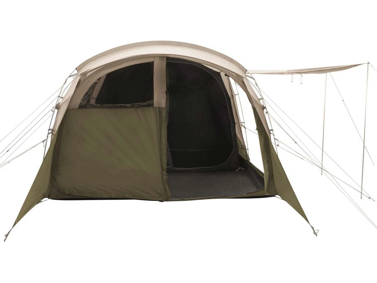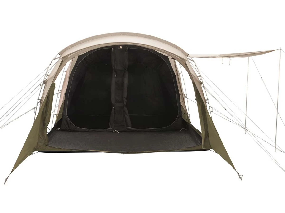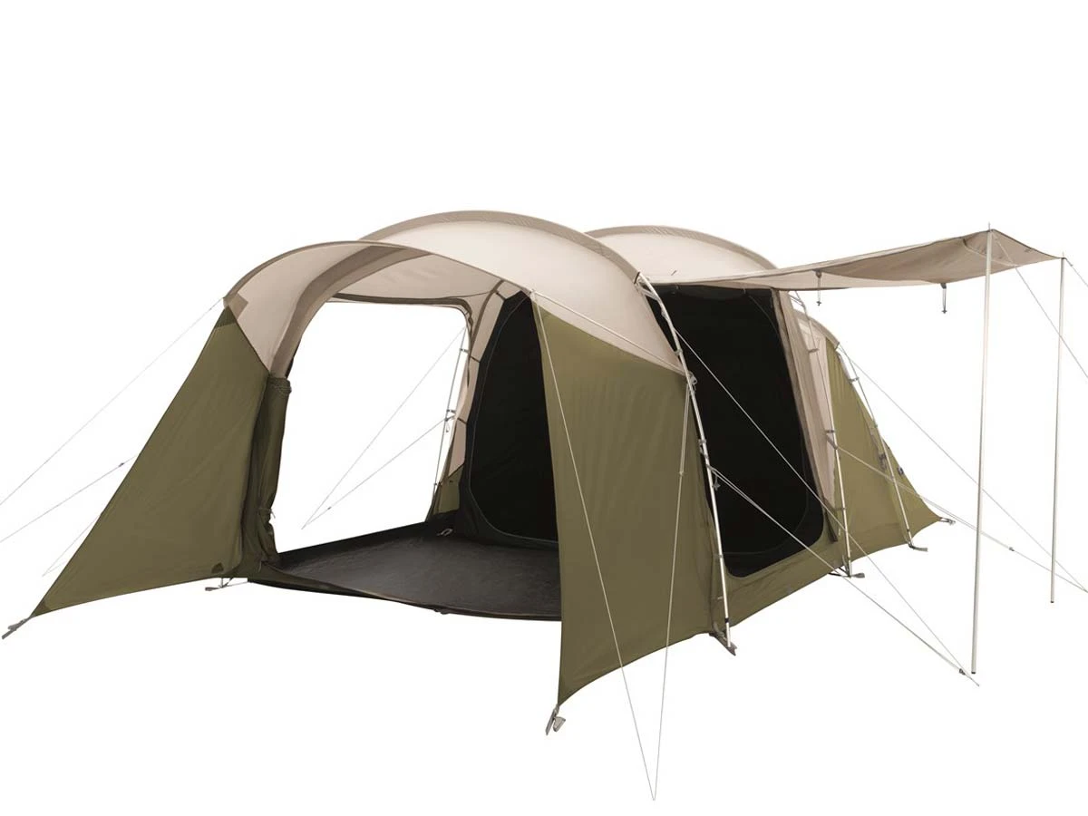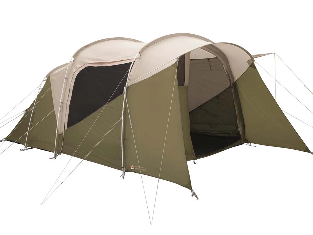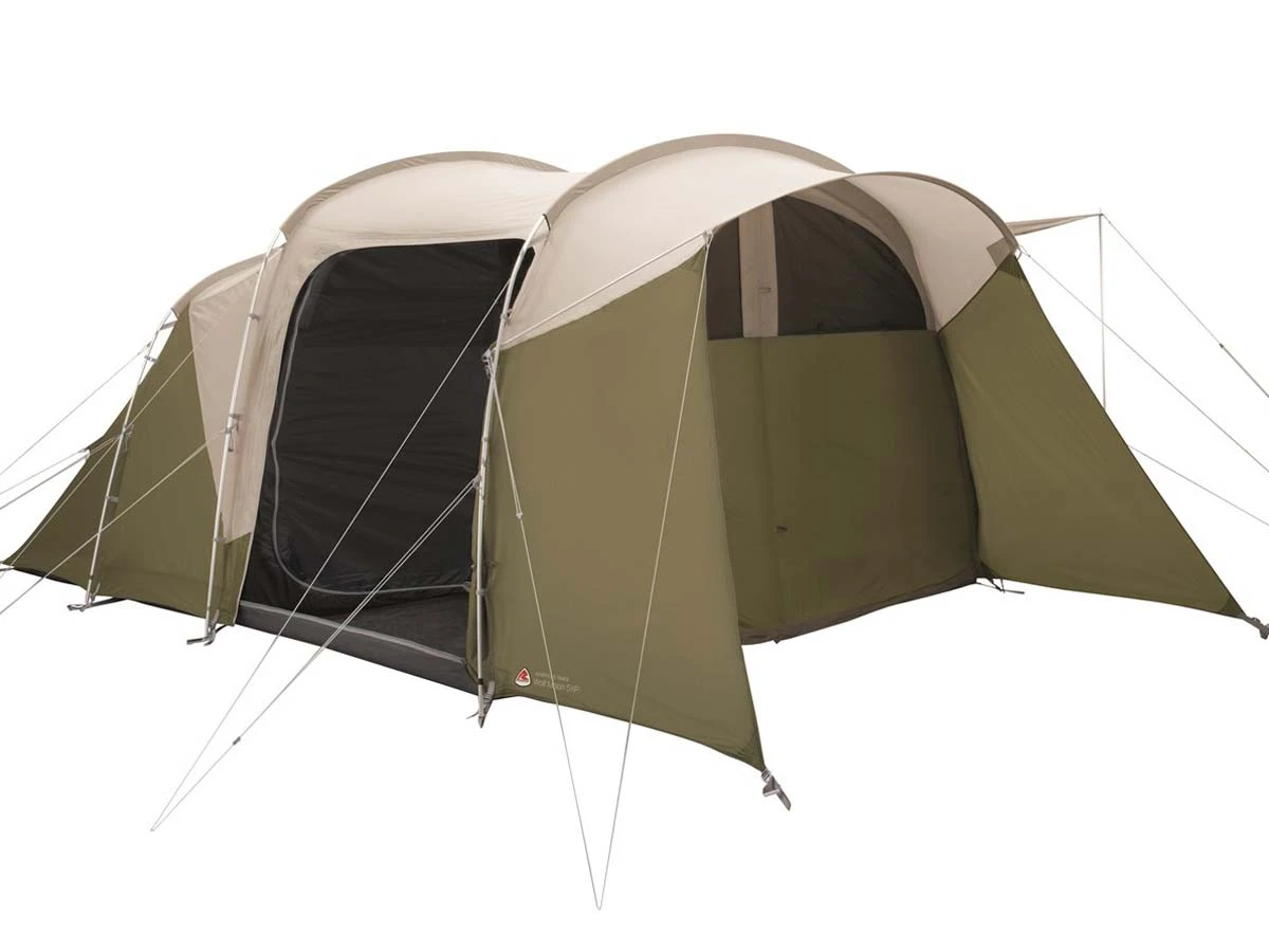 Wenn einfach Alles passt! Das Wolf Moon 5XP von Robens ist ein großes Familienzelt für 4-5 Personen und bietet viele Eigenschaften, um das richtige Gruppenzelt für ausgiebige Zelturlaube mit Familie und Freunden zu sein. Absolut wetterfest präsentiert sich das Tunnelzelt mit seinem robustem und beschichtetem Polyester-Tafetta-Außenzelt und dem Yunan®-Aluminiumgestänge. Die in ausreichender Zahl vorinstallierten Abspannleinen erhöhen bei Verankerung im Boden die Windstabilität entscheidend. Dank eingehängtem Innenzelt geht der Aufbau zu zweit leicht von der Hand. Aufgebaut wartet das Wolf Moon 5XP mit zwei, abgedunkelten Schlafkabinen im hinteren Teil auf. Die etwas kleinere der Beiden kann für mehr Wohnraum auch beiseite gefaltet werden. Davor bietet der trockene Vorraum genug Platz für Campingmöbel. Hier können die seitlichen Eingänge je nach Wetter, Laune und Freundlichkeit der Nachbarn geöffnet oder geschlossen werden. Alle Türen des Wolf Moon 5XP sind mit Moskitonetzen hinterlegt. Das Familienzelt verfügt dank des weit vorgezogenen Dachs und der seitlich aufstellbaren Tür (Aufstellstangen optionales Zubehör) über zusätzlichen Schatten bzw. regensicheren Raum. Wer ein gut belüftetes, großzügiges und überall einsetzbares Familienzelt sucht, ist mit dem Wolf Moon 5XP von Robens gut beraten. Als tapir-Special gibt es die Original-Robens-Zeltunterlage und den entsprechenden Zeltteppich inklusive.
