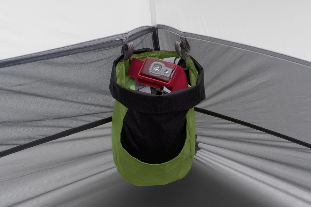 - Lieferung im dreigeteilten FairShare–Packsack – Gewicht kann optimal aufgeteilt werden, Gestängepacksack wird unter Verwendung einer Stirnlampe zum Lightbar, einer Zeltlampe im Zeltfirst; die beiden anderen Packsäcke können als zusätzliche Innentaschen in den Ecken des Innenzeltes befestigt werden