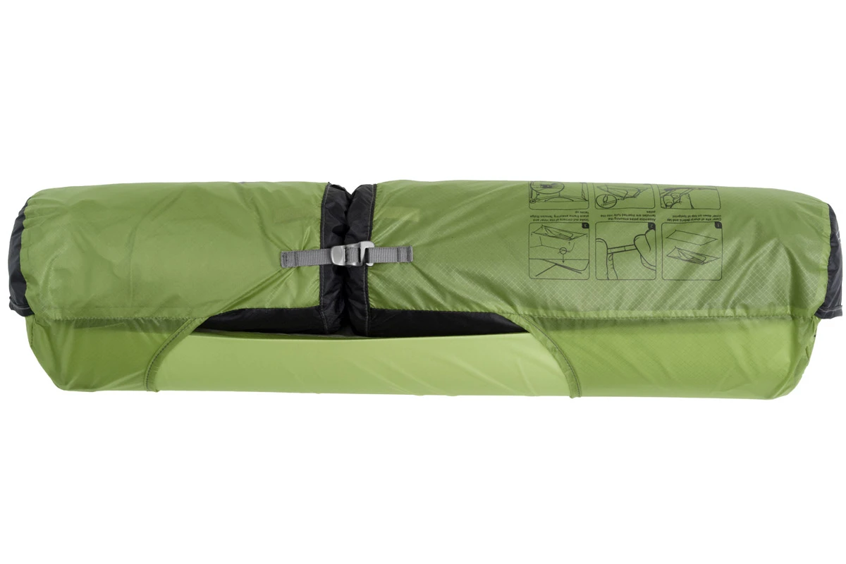 - neuartiger Hangout-Mode verwandelt das aufgespannte Außenzelt mit Hilfe zweier Trekkingstöcke in einen halboffenen Wetterschutz mit Panoramablick