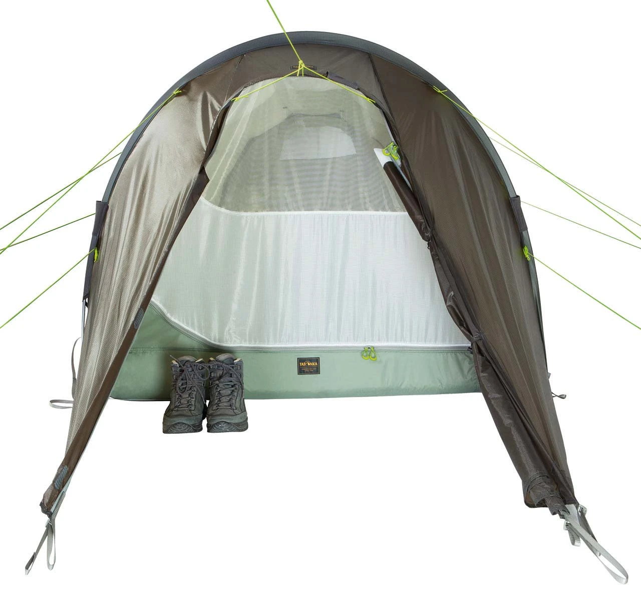 - im Außenzelt eingehängtes Innenzelt mit 2 gegenüberliegenden Türen