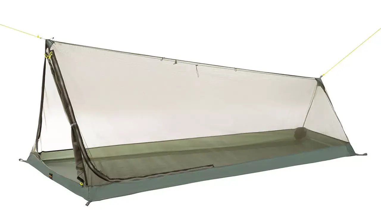 Mit dem Single Mesh Tent von Tatonka kannst du deine Nächte unter freiem Himmel gut vor Insekten geschützt verbringen. Für eine Person bietet es ein komfortables Platzangebot und auch noch Raum für die persönliche Ausrüstung. Das luftige Meshmaterial besitzt 1000 Löcher pro Quadratzoll und hält so zuverlässig Stechmücken, Zecken, Wespen und andere Krabelltiere fern. Der robuste Boden des Single Mesh Tent hat eine Wassersäule von 10.000 mm und bietet so auch bei nassem Untergrund Komfort und hält Isomatte und Ausrüstung trocken. Das Meshzelt in Dachform lässt sich mit Trekkingstöcken oder geeigeneten Ästen aufbauen und ist ohne Stöcke an Bäumen abspannbar. In Kombination mit einem Tarp ist das Tatonka Moskitozelt eine leichte und flexible Alternative zu einem Zelt und bietet dir einen kompletten Wetterschutz für 3-Jahreszeiten.