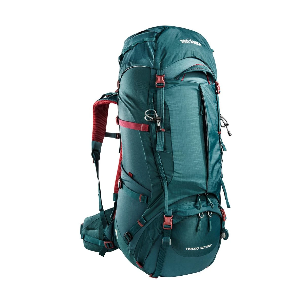 Der Trekkingrucksack Yukon 50+10 Women von Tatonka ist ein außergewöhnlich gut gepolsterter und sehr solider Rucksack für Frauen. Das verbesserte V2-Tragesystem ermöglicht beschwerdefreies Tragen von schweren Lasten bis zu 25 kg auch bei längeren Touren und ist speziell auf die weibliche Anatomie abgestimmt. Dank eines 10 Liter fassenden Auszuges kann der Damen-Trekkingrucksack bis auf 60 Liter Volumen erweitert werden und fasst so locker die Ausrüstung für eine Trekkingtour. Die große Frontöffnung mit 3D-Reißverschluss für das Hauptfach erleichtert das Packen und Suchen im Rucksack. Die Deckeltasche des Tatonka Yukon 50+10 Women hat zwei Reißverschlussfächer und am Packsack sind außen zwei elastische Seitentaschen für Trinkflaschen angebracht. Regenhülle und Trinksystemvorbereitung sind bei diesem gut ausgestatteten Frauenrucksack natürlich auch dabei. Insgesamt ist der Tatonka Yukon 50+10 Women der ideale Rucksack für lange Reisen und ambitionierte Trekking-Touren.