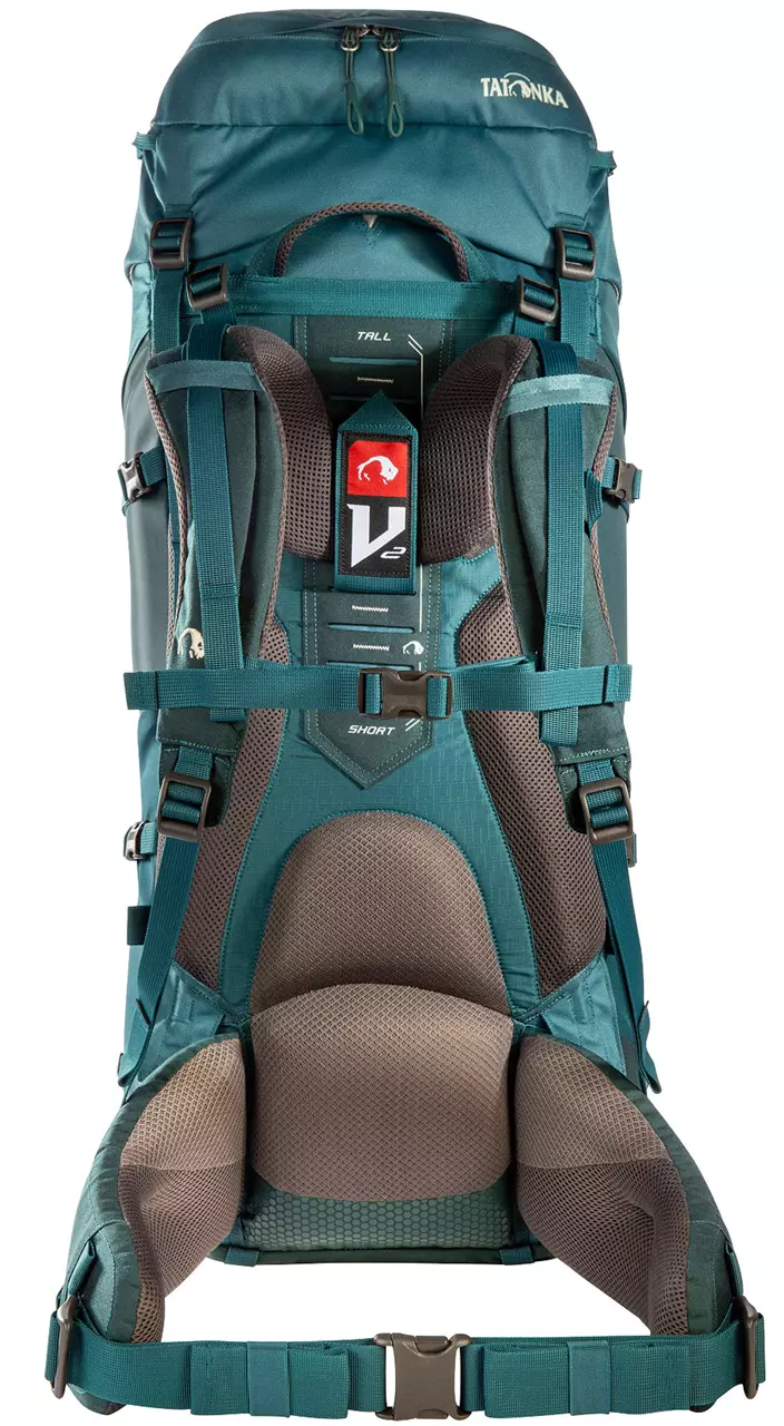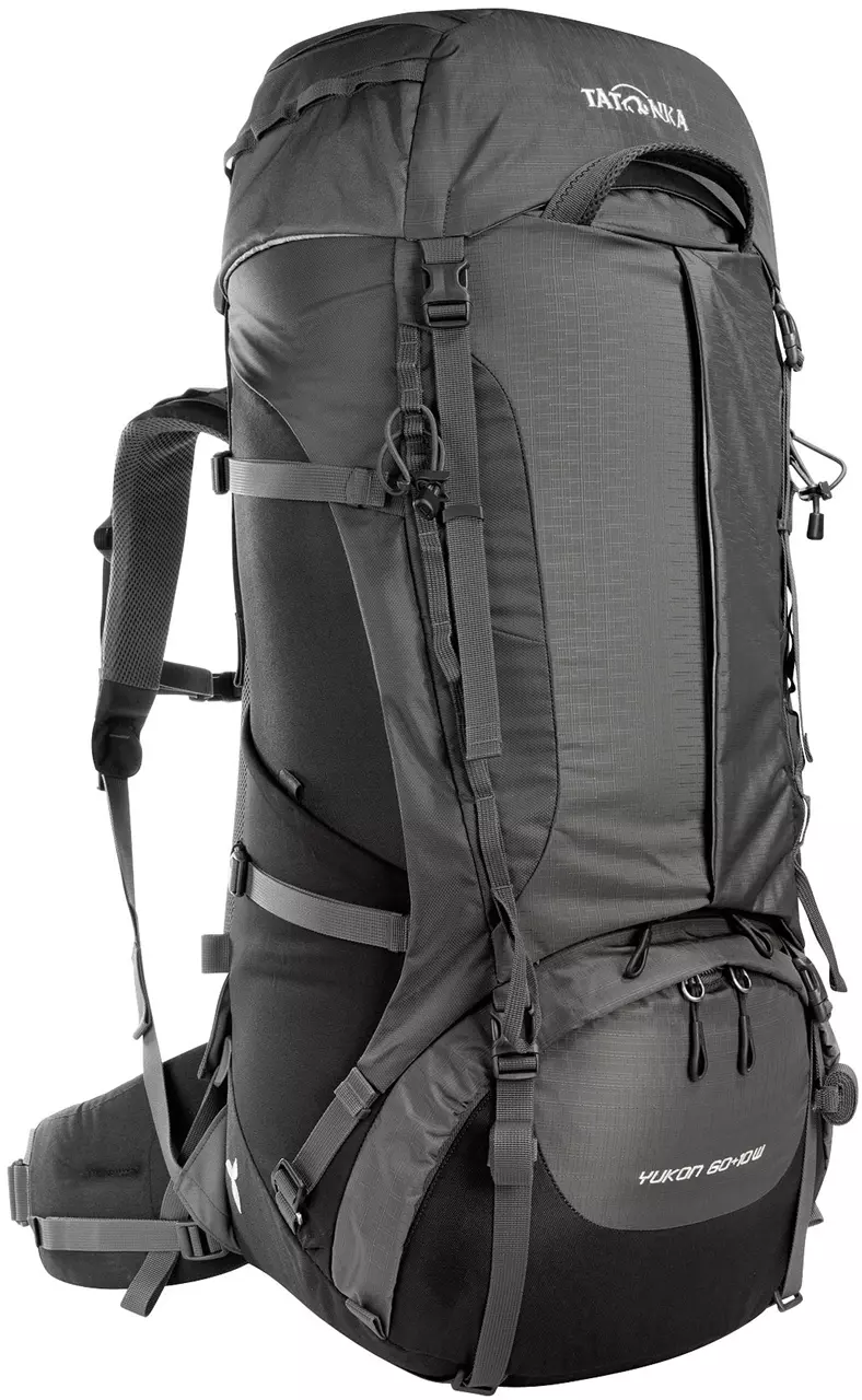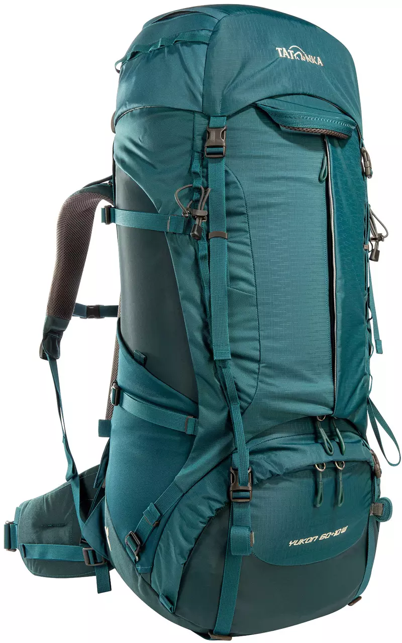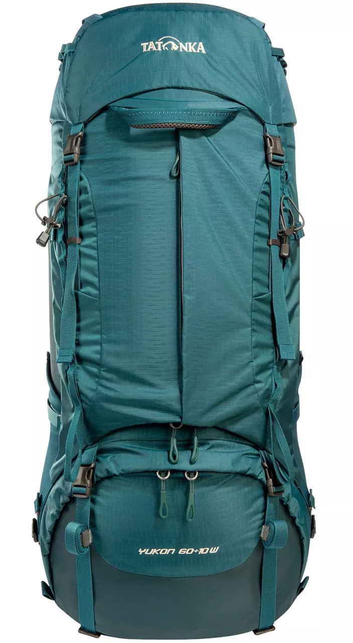 Der Trekkingrucksack Yukon 60+10 Women von Tatonka ist ein außergewöhnlich gut gepolsterter und sehr solider Rucksack für Frauen. Das verbesserte V2-Tragesystem ermöglicht beschwerdefreies Tragen von schweren Lasten bis zu 25 kg auch bei längeren Touren und ist speziell auf die weibliche Anatomie abgestimmt. Dank eines 10 Liter fassenden Auszuges kann der Damen-Trekkingrucksack bis auf 70 Liter Volumen erweitert werden und fasst so locker die Ausrüstung für eine Trekkingtour. Die große Frontöffnung mit 3D-Reißverschluss für das Hauptfach erleichtert das Packen und Suchen im Rucksack. Die Deckeltasche des Tatonka Yukon 60+10 Women hat zwei Reißverschlussfächer und am Packsack sind außen zwei elastische Seitentaschen für Trinkflaschen angebracht. Regenhülle und Trinksystemvorbereitung sind bei diesem gut ausgestatteten Frauenrucksack natürlich auch dabei. Insgesamt ist der Tatonka Yukon 60+10 Women der ideale Rucksack für lange Reisen und ambitionierte Trekking-Touren.