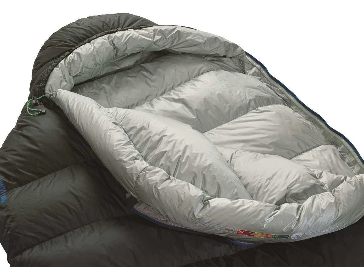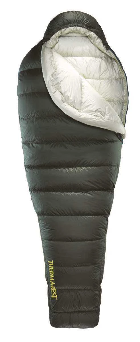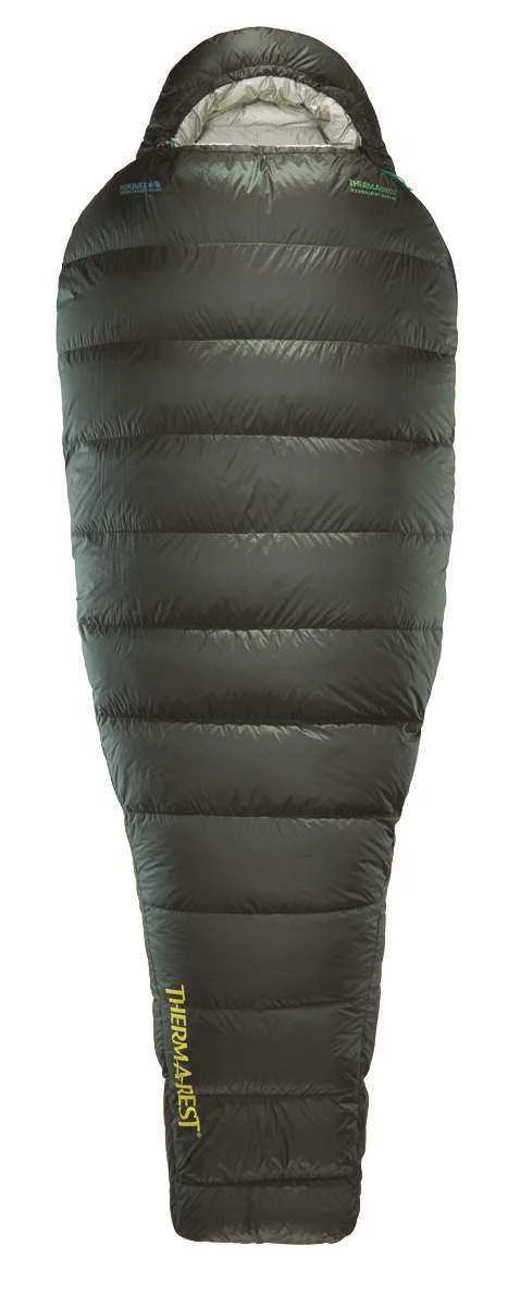 Mit dem ultraleichten Dauenschlafsack Hyperion™ 0C von Therm-a-Rest können Grammjäger das Gewicht ihrer Ausrüstung nochmals erheblich reduzieren ohne dabei auf einen erholsamen und komfortablen Schlaf verzichten zu müssen. Dank eines dünnen Außen- und Innenmaterials aus Ripstop-Nylon, eines halblangen Reißverschlusses und hochwertigster Gänsedaune mit 900 cuin Bauschkraft erreicht der Hyperion™ 0C ein unübertroffen kleines Packmaß und ein federleichtes Gewicht von 460 Gramm (Größe Regular)! Die untere Komforttemperatur von 0 °C macht den Hyperion™ zum perfekten Drei-Jahreszeiten-Schlafsack für schnelle Outdooraktivitäten, bei denen ein niedriges Gesamtgewicht essentiell ist. Für erhöhte Feuchtigkeitsresistenz bei Übernachtungen mit Tarp sind die verwendeten, RDS-zertifizierten Daunen mit einer umweltfreundlichen, fluorfreien Imprägnierung von Nikwax versehen. So nimmt die Füllung 90 % weniger Feuchtigkeit auf und trocknet erheblich schneller als unbehandelte Daunen. Für zusätzlichen Wärmerückhalt und das geringe Gewicht des Daunenschlafsacks sorgt die ThermaCapture™-Beschichtung des Innenfutters, welche die Körperwärme des Schläfers reflektiert. Ein Wärmekragen, die gefütterte Reißverschlussabdeckung und die abnehmbaren Riemen zum Verbinden mit einer Isomatte runden die superbe Ausstattung des Therm-a-Rest Schlafsacks ab.