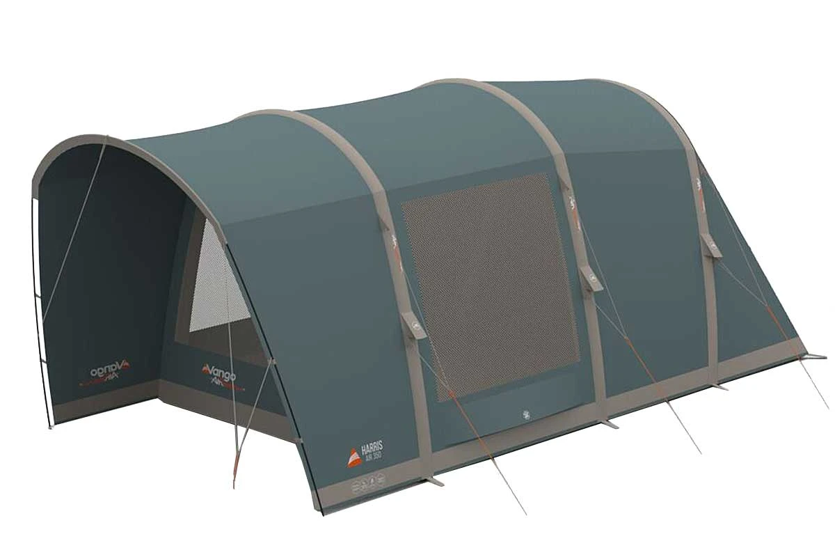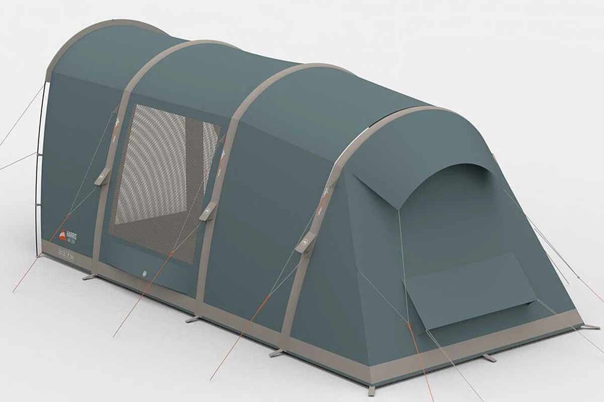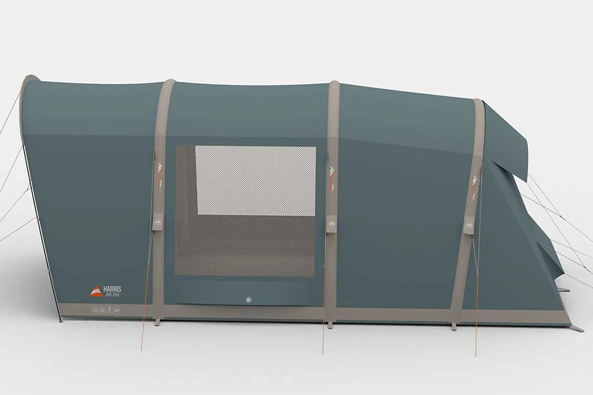 Beam me up, Scotty! Das Vango Harris Air 350 ist ein stehhohes Tunnelzelt, das mit Hilfe dreier AirBeam®-Luftschläuche unkompliziert aufgepumpt und dann Outdoor-Wohnung für 2-3 Personen werden kann. Die Vango-Zeltdesigner aus dem westschottischen Port Glasgow haben das kleine Familienzelt in einen Vorraum mit senkrechter Front und eine Schlafkabine unterteilt, die für längeren Morgenschlaf abgedunkelt ist. Damit kann das Harris Air 350 optimal von einer dreiköpfigen Familie oder von zwei Erwachsenen genutzt werden, die einen Teil des Schlafraumes als Stauraum nutzen möchten. Die große Fronttür im Außenzelt kann nur mit Moskitonetz verschlossen oder auch komplett aufgerollt werden. Weil sie durch ein großzügiges Vordach geschützt ist, geht das auch bei Regen. Schlechtes Wetter kann dem mit schottischen Genen ausgestatteten Vango Harris Air 350 eh wenig anhaben: Das Außenzeltmaterial und der fest eingenähte Boden sind dauerhaft wasserdicht beschichtet, die Nähte sind alle nahtbandversiegelt und gegen heftigen Wind gibt es robuste Abspannmöglichkeiten sowohl außen als auch innen an den tragenden, vorgeformten AirBeam®-Bögen. Damit man im Vango Harris Air 350 Schlechtwetterphasen wirklich komfortabel aussitzen kann, gehören im tapir store der passende Zeltteppich für den Vorraum und die Original-Zeltunterlage zum Schutz des Zeltbodens zum Lieferumfang dazu.
