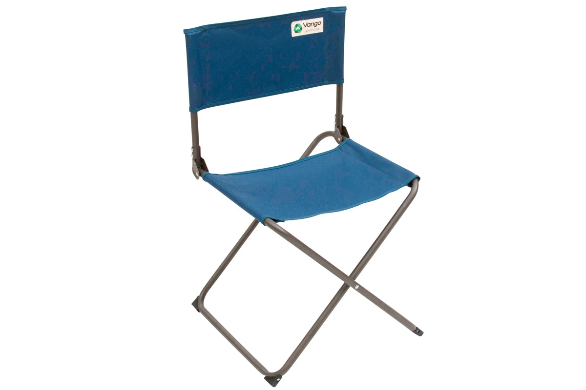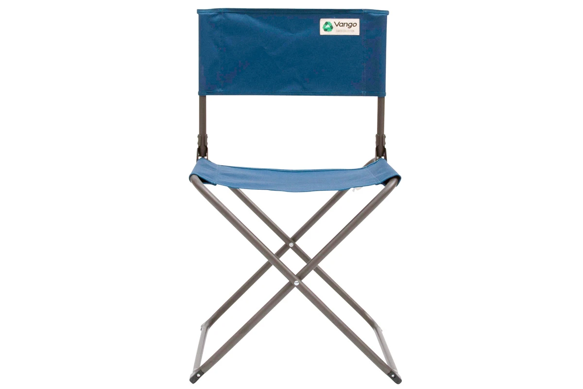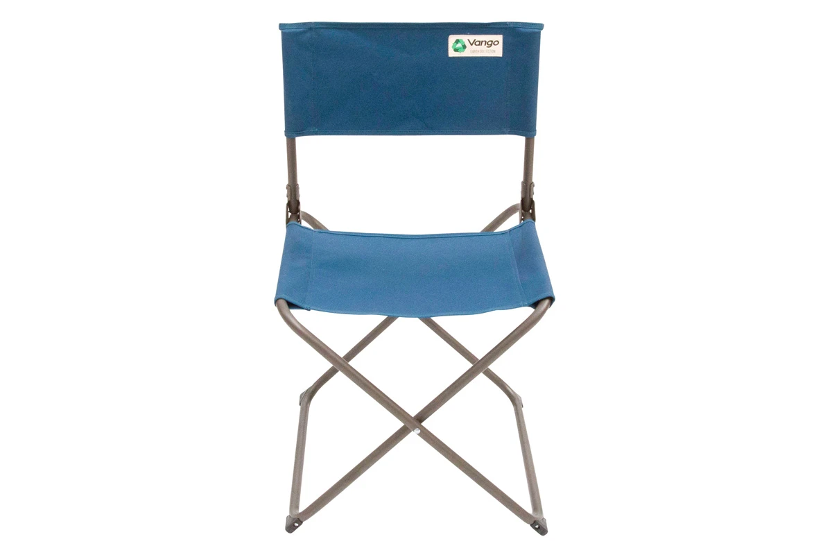 Verwandlung. Der Vango Tellus ist ein einfacher, preiswerter, aber stabiler Campingstuhl der sehr schnell vom 9 cm flachen Transport-Paket zum vollwertigen Sitzmöbel aufgefaltet werden kann. Die Sitzhöhe entspricht nahezu der eines normalen Stuhles, die Lehne ist gerade und unterstützt eine gesunde Sitzhaltung beim Essen oder Spielen am Tisch. Vango hat für den Bezug jedes Tellus-Stuhles das Material von drei PET-Flaschen in einen robusten Stoff mit einem angenehm textilen Griff verwandelt. Das Gestell des Faltstuhle besteht aus Stahl und verleiht dem Tellus eine Tragkraft von 120 kg.