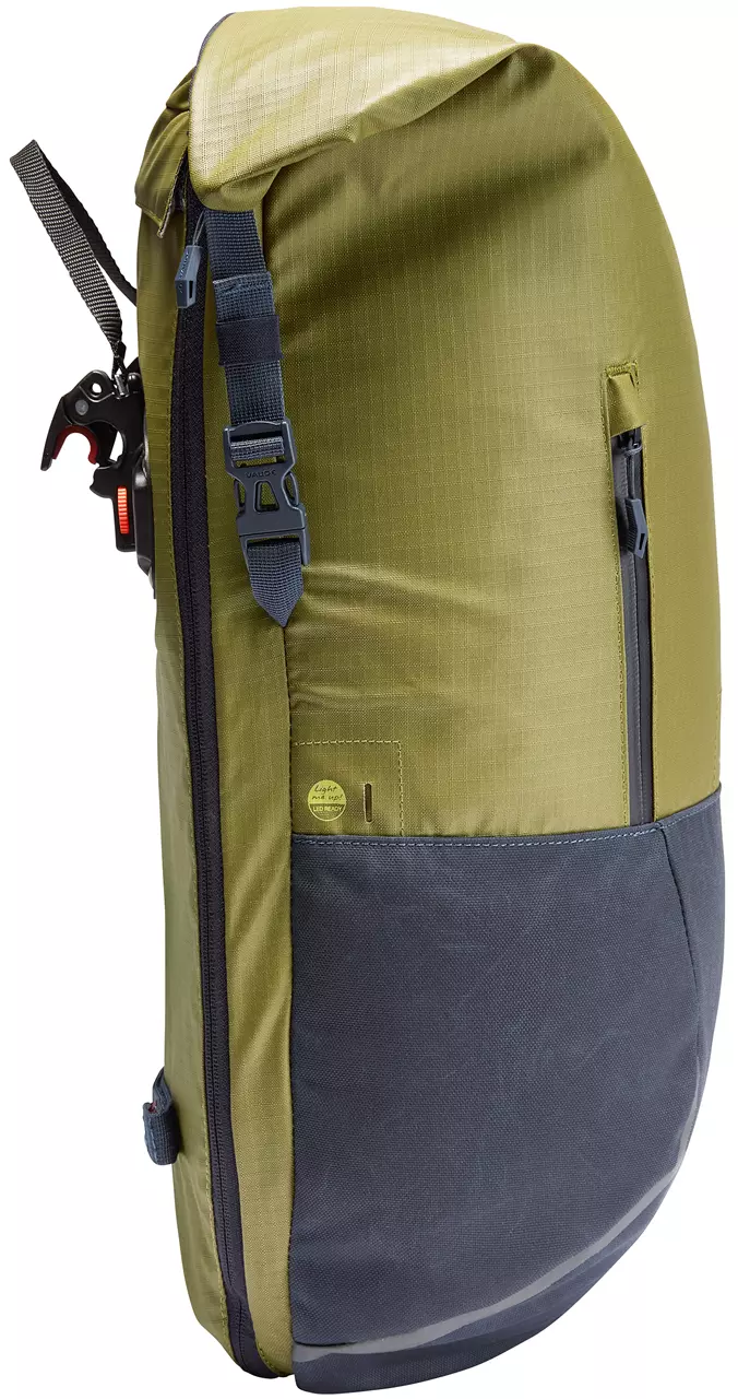 Eine für alles! Die robuste CityGo Bike 23 ist Dein perfekter Begleiter für alle Fahrradfahrer, die eine möglichst vielseitige Radtasche für den urbanen Alltagseinsatz suchen. Eine, die sich sowohl als geräumige Fahrradtasche als auch als schicker Laptoprucksack einsetzen lässt. Diese hier ist besonders pfiffig – sie verfügt über eine leicht verstaubare Gepäckträgeraufhängung, die schnell und sauber im KLettverschluss-Rückenfach verstaut werden kann. Der so umgebaute Stadtrucksack punktet mit einem komfortablen Rückensystem und bequemen ErgoShape Schultergurten sowie einer durchdachten Innenorganisation. Dank der Deckelerweiterung finden im Hauptfach neben Laptop bis 13,3 Zoll Größe auch viele anderen Utensilien Platz, die man im Alltag so braucht – Schreibblöcke, Bücher, Kopfhörer, Extrajacke, Yogamatte, Smartphone, Schlüssel, Geldbeutel und vieles mehr. Durch die QMR 2.0-Befestigung sitzt diese Biketasche fest und ruckelfrei am Gepäckträger und ist schnell und unkompliziert befestigt und wieder abgenommen. Der CityGo Bike 23 ist darüber hinaus ein “LED ready”-Produkt und lässt sich daher mit dem Light me up Kit ausstatten – einem innovativen Lichtleiter, der optional dazubestellt werden kann und in Kombination mit einer herkömmlichen Powerbank zum Leuchten gebracht wird. Somit ist die CityGo Bike 23 Radtasche eine modular einsetzbare Alltagstasche, die speziell im Pendeleinsatz und im urbanen Umfeld punktet. Das Vaude Green Shape-Label steht für ein umweltfreundliches, funktionelles Produkt aus nachhaltigen, teils recycelten Materialien.