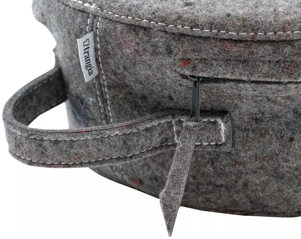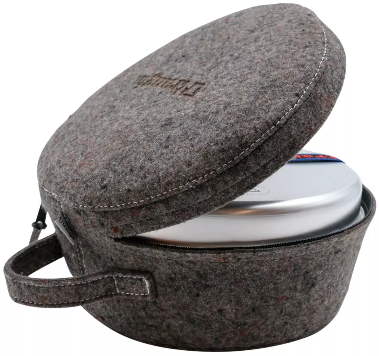 Lokal vernetzt: Trangia bezieht seinen Rohstoff für das Wool Cover für Trangia-Sturmkocher groß (25-Serie) vom quasi nebenan produzierenden Kleidungshersteller Woolpower. Und mit Rohstoff sind recycelte Wollfilzreste gemeint, die zusammen mit einem Kunstfaseranteil dann von Trangia zur Schutzhülle verbaut werden. Die Transporttasche passt für alle großen Sturmkocher-Modelle mit der Seriennummer 25-x. Der umlaufende Reißverschluss des Wool Cover ermöglicht das einfache Ein- und Auspacken und ein Griff das solide Hantieren. Schutz vor Kratzern am Kocher und gleichzeitig ein hübsch rustikales und nachhaltig gefertigtes Zubehör: Schenk deinem Trangia-Kocher dieses neue Kleid!